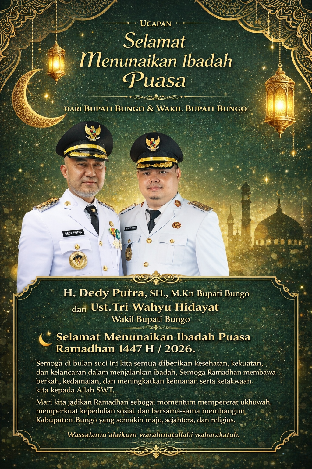 Bungonews.net,Bungo-Camat Sirojuddin, S.Pd menyampaikan ucapan selamat menunaikan ibadah puasa Ramadhan 1447 H/2026 Selengkapnya..