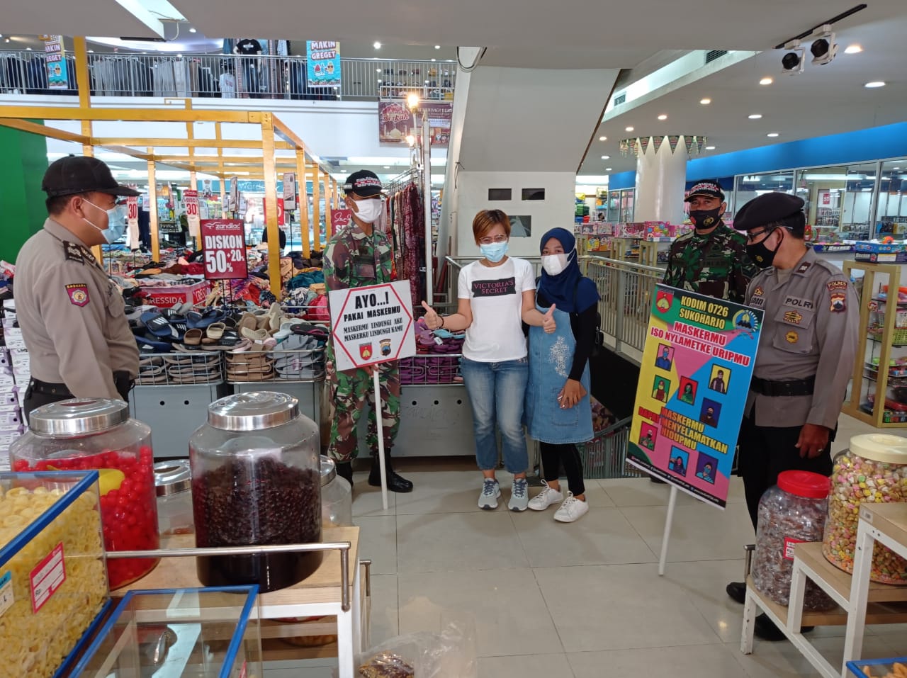 Danramil 06/Kartasura Kapten Inf Mardianto mengatakan, bahwa dalam kegiatan patroli kali ini, petugas bertatap muka dengan karyawan dan pengunjung swalayan untuk menghimbau penerapan protokol kesehatan 5M.