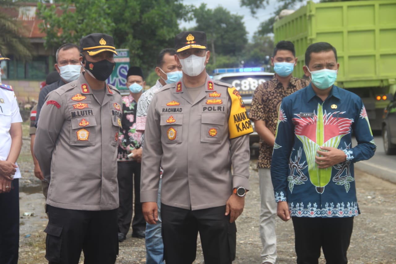Bungonews.net , BUNGO – Kapolda Jambi Irjen Pol A Rachmad Wibowo mengecek kesiapan pos penyekatan arus mudik lebaran tahun 2021 perbatasan Jambi-Sumatera Barat di Jalan Lintas Sumatera KM 50, Dusun Rantau Ikil, Kecamatan Jujuhan, Kabupaten Bungo, Jum’at siang (30/4/2021).