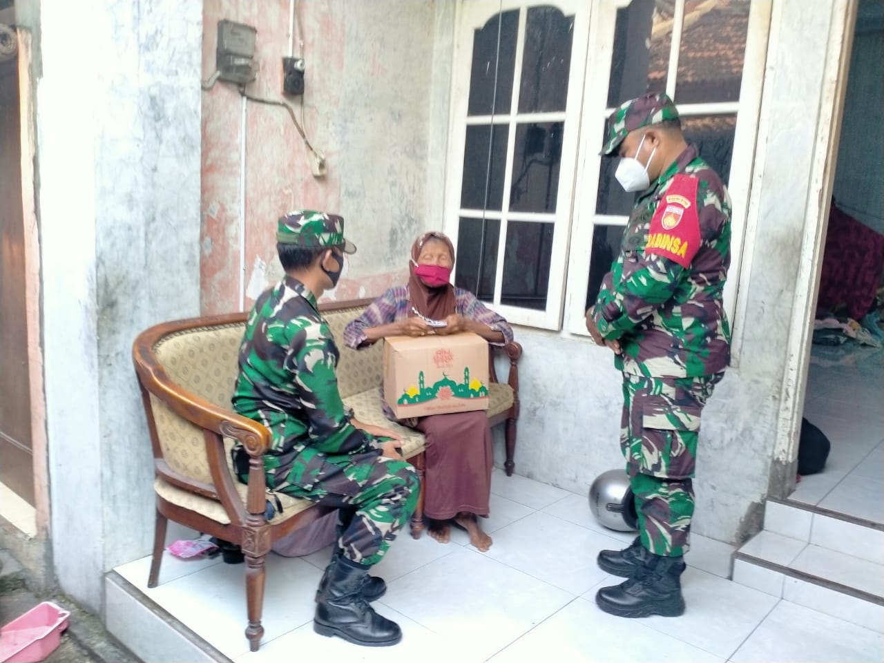 Ngatiah ( 68 ) janda penjual barang bekas di Seputaran Bundaran Patung Tipes, yang pengsasilannya tiap hari rata- rata Rp. 25.000,- hanya bisa untuk makan adalah salah satu warga penerima bingkisan dari Dandim 0735 Solo .yang diserahkan oleh Danramil 03 Serengan Kapten Inf Tri Sakti K dan Anggotanya, (15/05)
