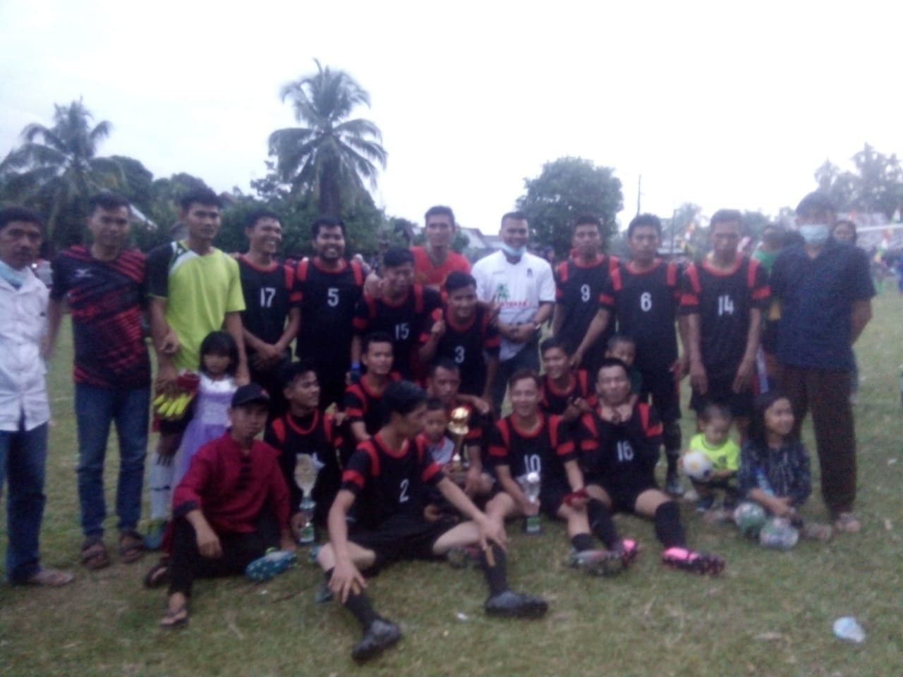 Dalam kesempatan itu datuk Rio dusun Tebing Tinggi menyerahkan tropi bergilir kepada juara 1 dan 2