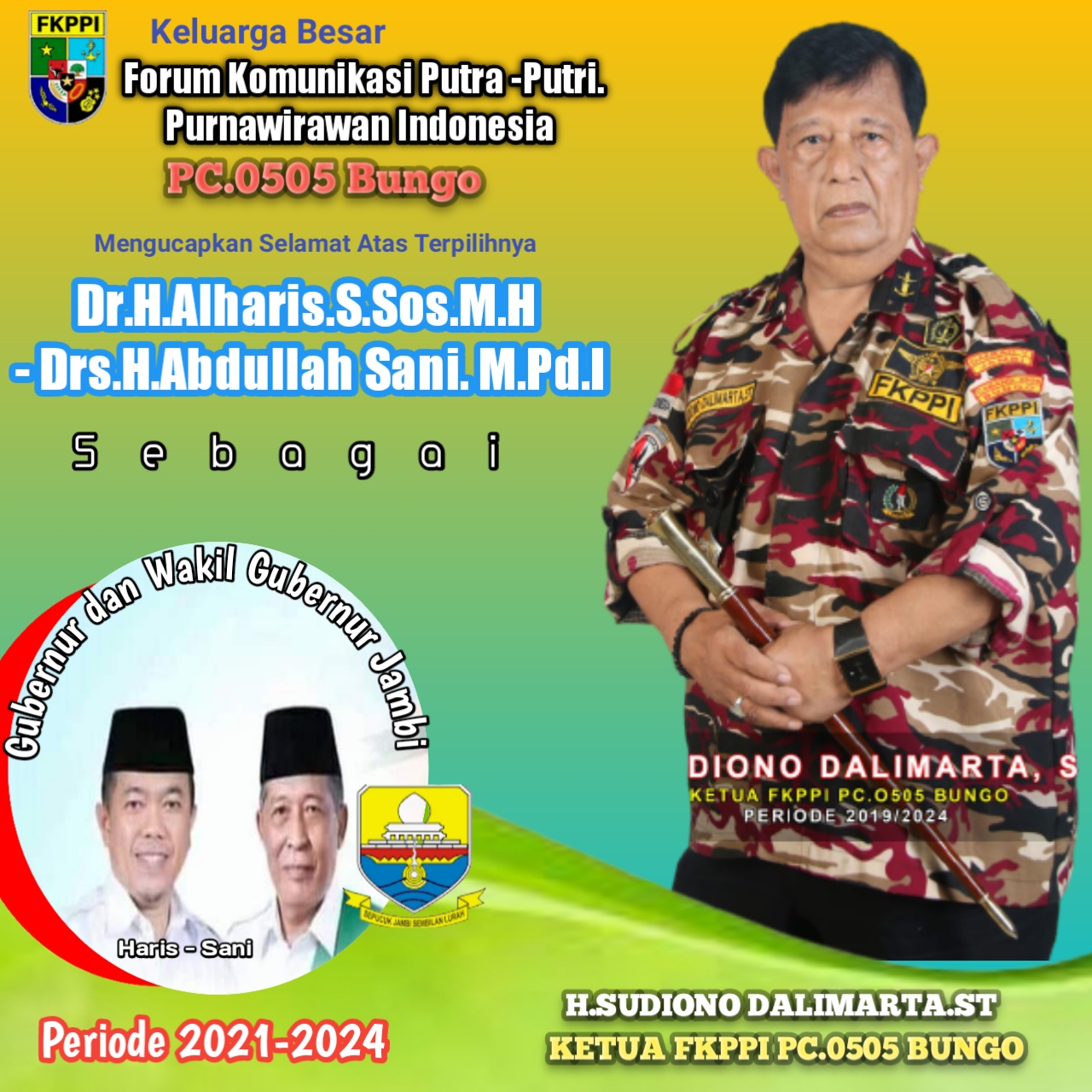 “Alhamdulillah hari ini Haris – Sani secara sah dan resmi ditetapkan sebagai Gubernur terpilih oleh KPU Provinsi Jambi , kami FKPPI PC Bungo Mengucapkan selamat atas di tetapkan nya Haris – Sani sebagai Gubernur Terpilih , ” Tutur Yudi Via Telpon Kepada Bungo news ( 12/06)