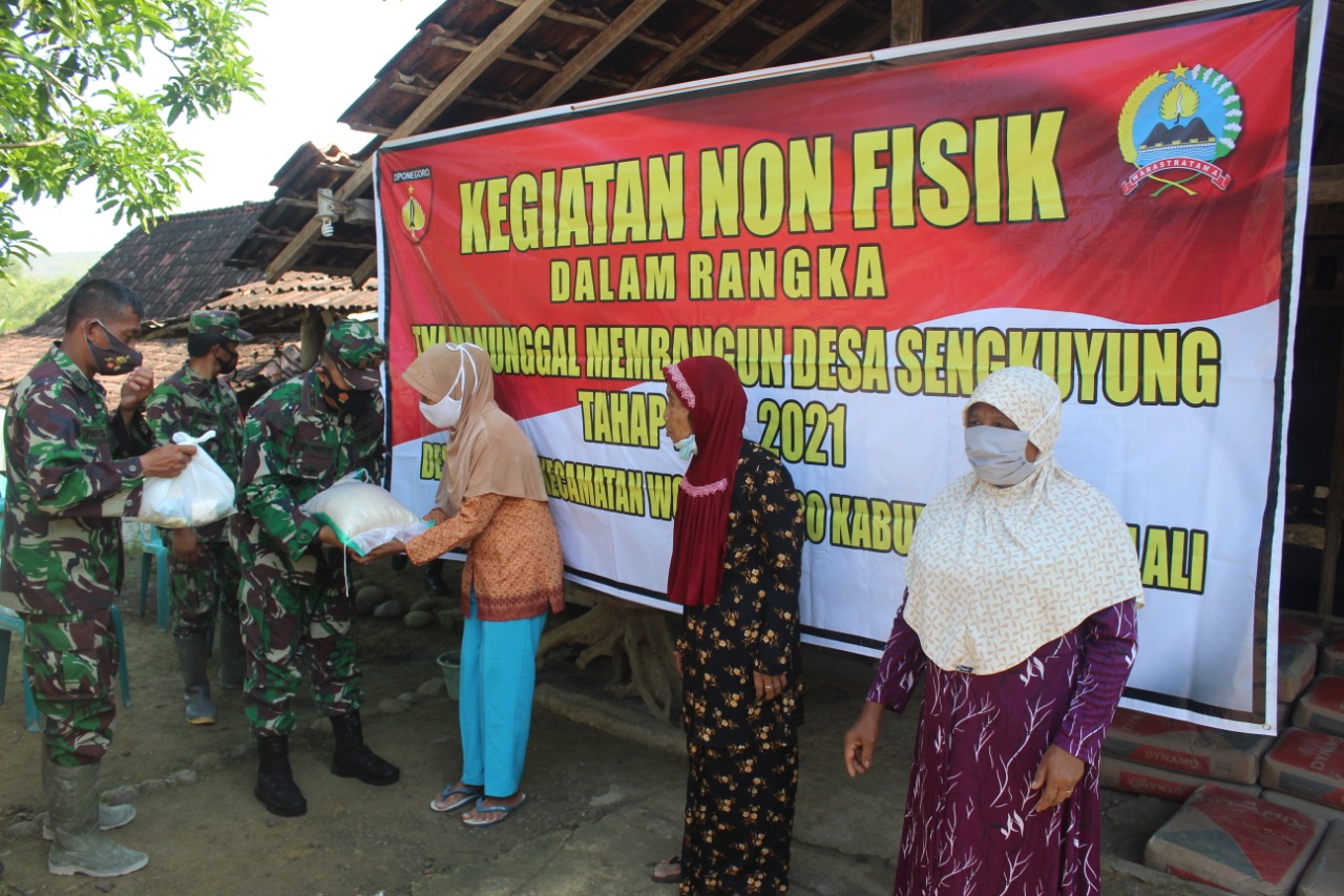 Dandim juga menyerahkan paket sembako bagi warga Desa Gosono yang membutuhkan dan berharap semoga pelaksanaan TMMD dapat terlaksana sesuai yang direncanakan tentunya keikutsertaan dan partisipasi warga sangat dibutuhkan dilapangan.