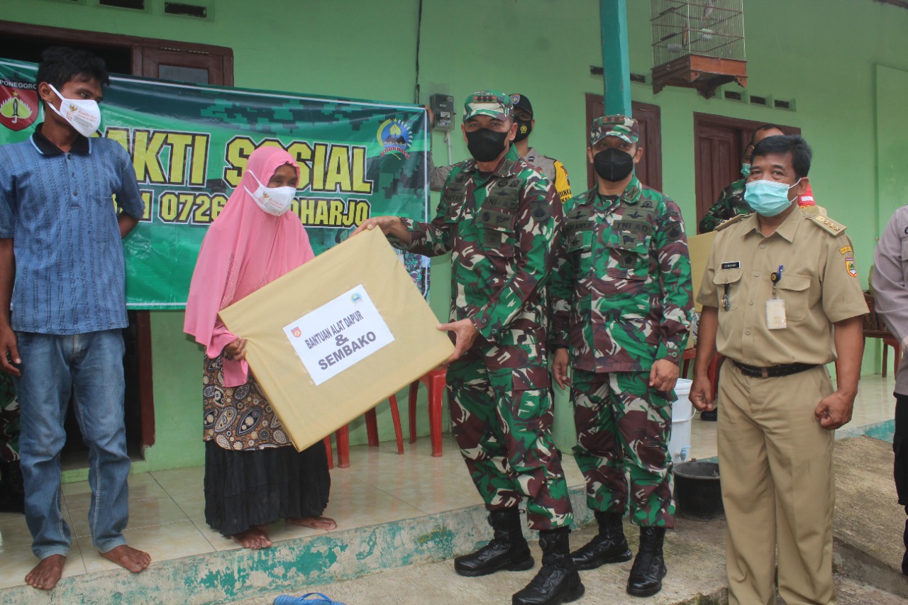 Bungonews.net , Sukoharjo- Danrem 074/Wrt Kolonel Inf Deddy Suryadi, S.I.P didampingi Letkol Inf Agus Adhy Darmawan, S.I.P., M.I.Pol (Dandim 0726/Sukoharjo) melaksanakan Penyerahan Bantuan Sosial kepada warga tidak mampu pada ,Senin (28/06/21)