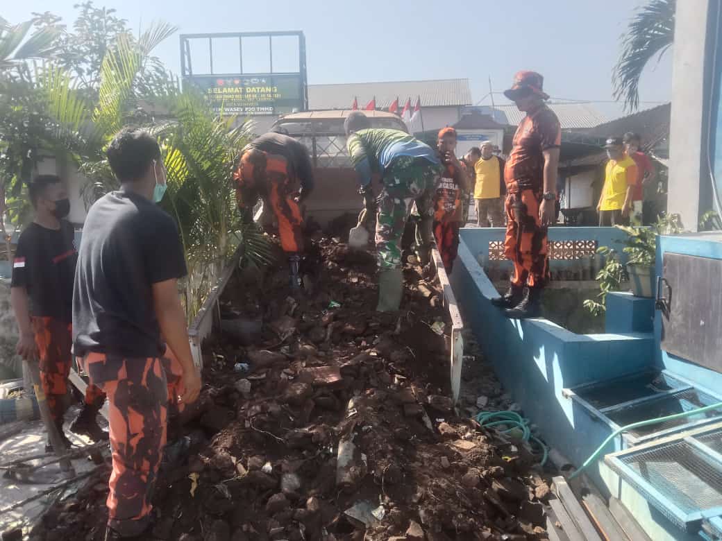 Nampak hari ini, Minggu (04/07/2021) Anggota Satgas TMMD bersama Ormas Pemuda Pancasila dan Linmas serta Warga Masyarakat bersama-sama melaksanakan pengurukan talud.