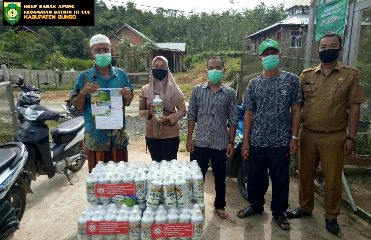 Penyerahan Pupuk Hayati cair Biokonversi dari Kementan melalui Dinas TPHP Kabupaten Bungo ini berlangsung di kantor Rio dusun setempat. yang dihadiri oleh pihak Dinas TPHP Kabupaten Bungo yang diwakili oleh Koordinator BPP kecamatan Bathin III Ulu Budiyanto , dan perwakilan perusahaan PT.Bio Konversi Indonesia , Perwakilan perangkat Desa Kholidi, PPL Desa Karak Apung ,Enny Maryani.S.SP.