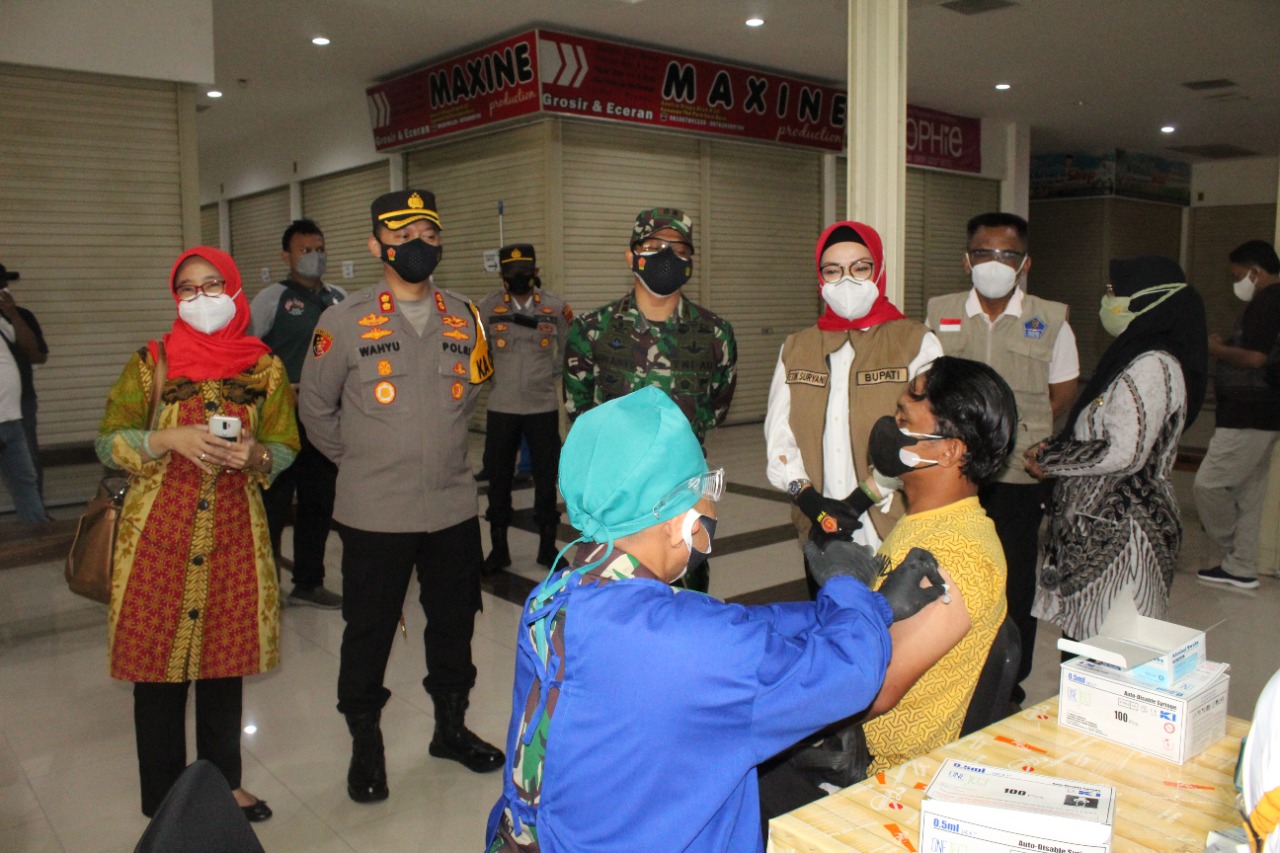 Bupati mengatakan bahwa menghimbau pada masyarakat yang memiliki kesempatan vaksin tidak disia siakan. “Kita terus upayakan vaksinasi kita gandeng TNI Polri semoga realisasi target vaksinasi akan lebih cepat,” ungkap Bupati Sukoharjo Etik Suryani.