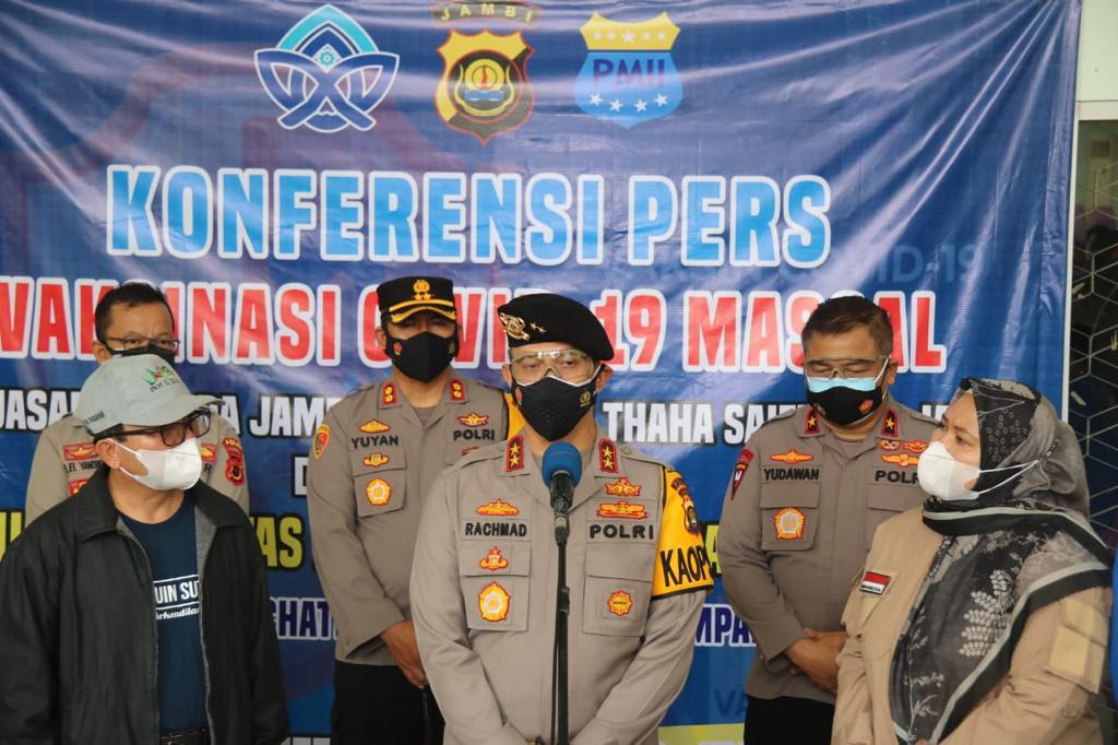 ” Untuk mencapai angka penerima vaksin Polda Jambi bekerjasama dengan berbagai pihak dengan target 70 persen dari jumlah 2,6 juta orang ” Tuturnya