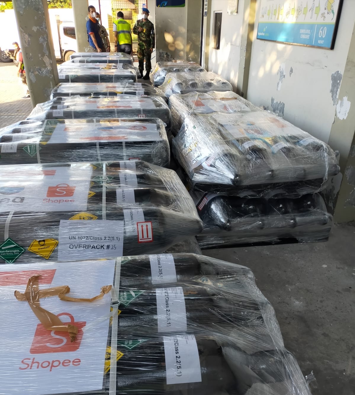 ” Tabung oxygen ini dikirim dari Singapura untuk Dinkes Kota Surakarta sebagai upaya untuk penanganan pasien Covid-19 yang membutuhkan oxygen karena ketersediaan oxygen di beberapa rumah sakit di Surakarta terbatas” Ujar petugas