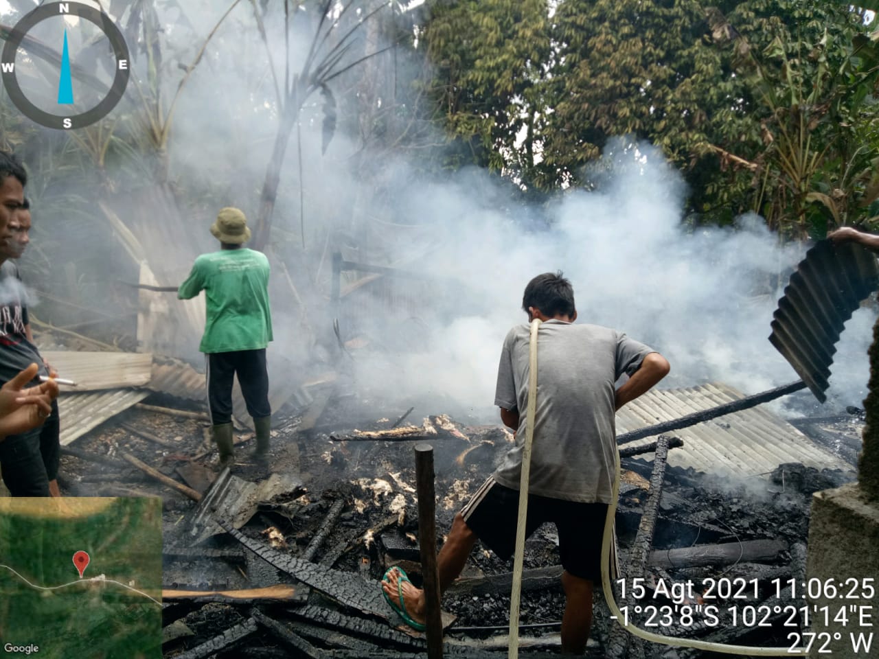 Bungonews.net,Tebo – Diduga akibat lupa mematikan kompor gas rumah Ilyas warga desa pagar puding kecamatan Tebo Ulu kabupaten Tebo – Jambi ludes dilahap Sijago merah , Minggu ( 15/08/21) sekira pukul 10,30 Wib.