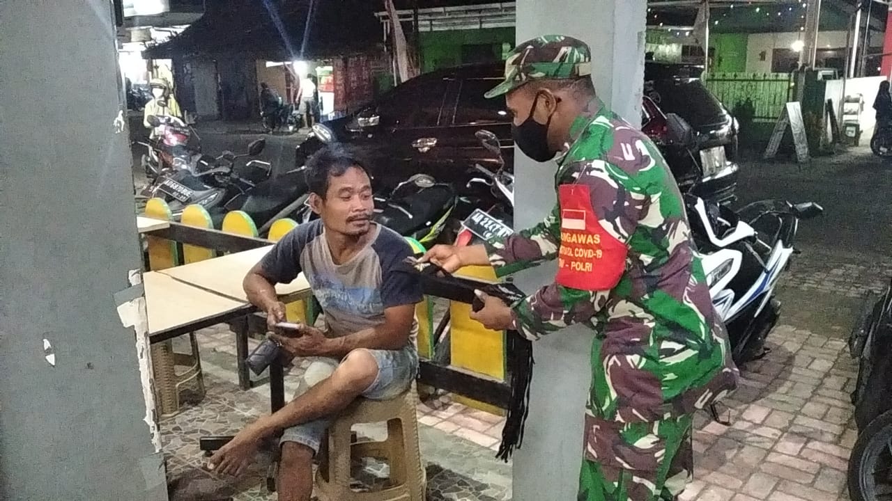 Begitu juga dengan yang dilakukan oleh anggota Koramil 17/Gondangrejo jajaran Kodim 0727/Karanganyar, Sertu Purwandi patroli pendisiplinan protokol kesehatan Covid 19 di sekitaran pasar Tuban kecamatan Gondangrejo, Jum’at 20 Agustus 2021.