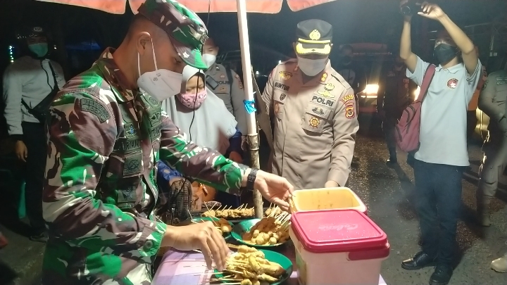 Bungonews.net, BUNGO – Usai menggelar Razia Yustisi di lapangan Semogor Pasar bawah Muara Bungo (21/08/21) malam , Kapolres Bungo, AKBP Guntur Saputro, S.ik, M.H, bersama Dandim 0426/Bute, Letkol Inf Arianto Maskare Subagio, borong bakso bakar pedagang