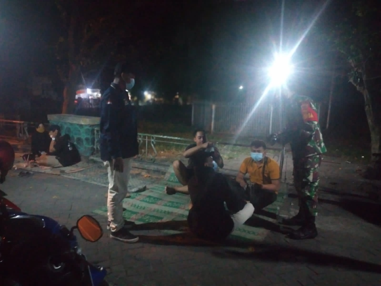 Sisir Jalan Adi Sucipto Anggota Koramil Colomadu Tertibkan Prokes