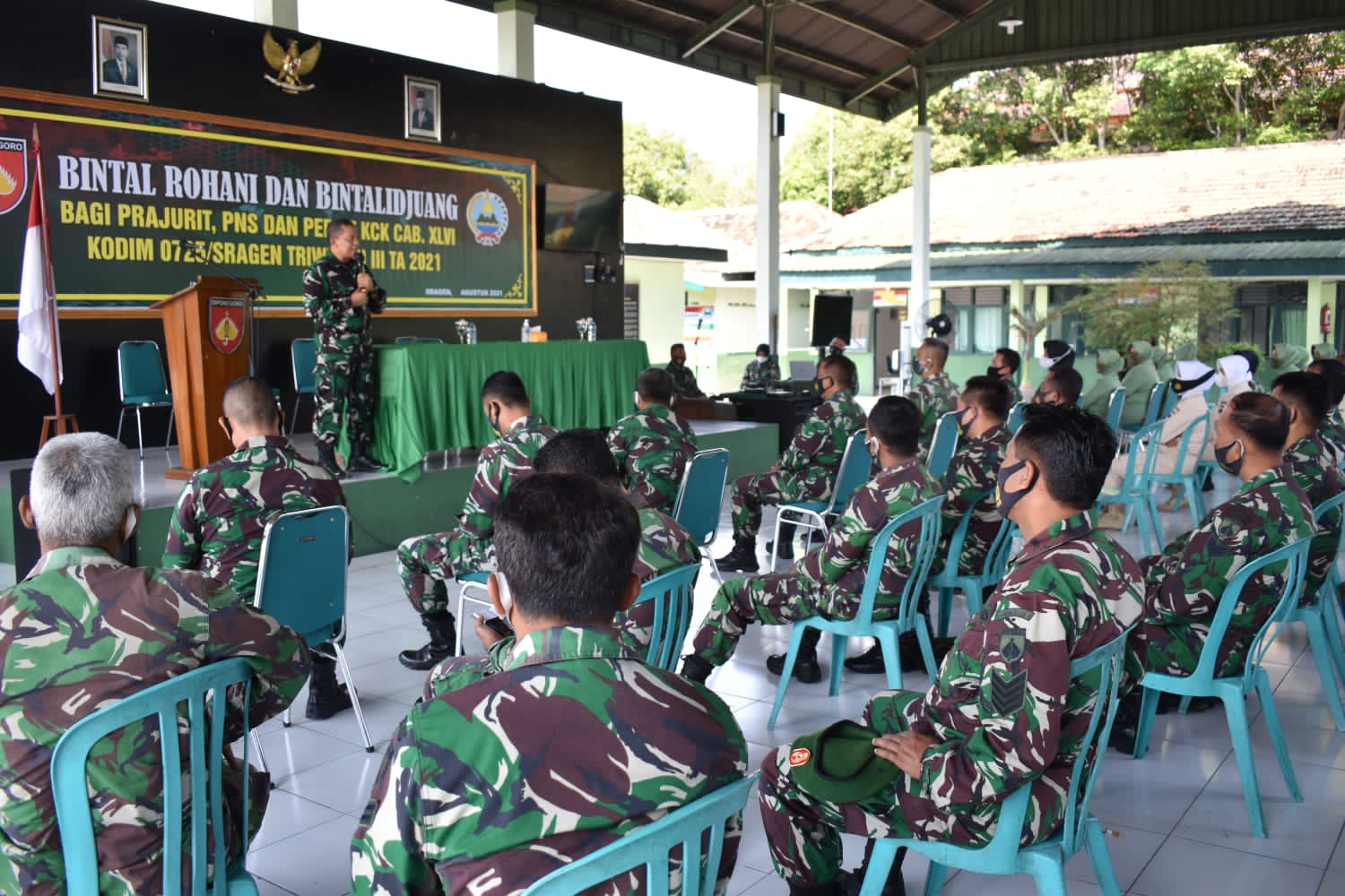 Kegiatan Bintal dalam satuan dengan tujuan untuk pengendalian kepada seluruh Prajurit TNI, ASN dan keluarga besar TNI untuk selalu mengedepankan kegiatan ke ibadahan, serta meningkatkan Iman dan Taqwa kepada Tuhan Yang Maha Esa agar tersirami hati dan pikiran kita akan tenang terhindar dari hal yang tidak baik sehingga dalam bekerja maupun berumah tangga akan nyaman.