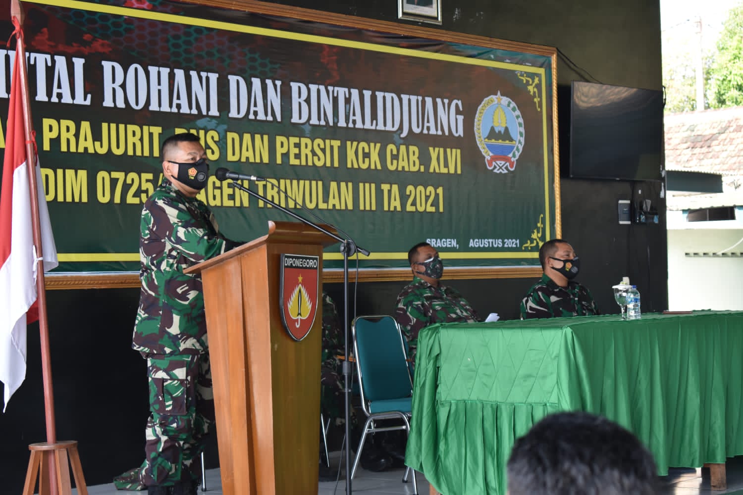 Bungonews.net, Sragen – Masih dalam suasana Pandemi Covid 19, perwakilan Prajurit TNI, ASN dan Persit KCK Cab. XLVI Kodim 0725/Sragen , beserta Kanminvetcad 31- IV/Sragen mengikuti kegiatan Pembinaan Rohani (Binroh) dan Pembinaan mental ideologi kejuangan (Bintalidjuang). Bertempat di Aula Guyup , Kodim 0725/Sragen, Selasa (24/08/2021)