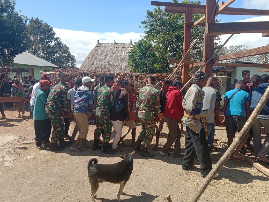 Terlihat anggota pos dengan masyarakat bahu membahu bergotong royong seperti yang dilakukan personel Pos Laktutus, Pos Salore dan Pos Nananoe ditempat yang berbeda membantu pembangunan rumah adat, Pos Dafala dan Pos Maubusa membantu warga binaan masing-masing yang sedang membangun rumah, dan Pos Motaain bergotong royong membantu pengerjaan bangunan tembok tebing sungai perbatasan di Dusun Motaain Desa Silawan.