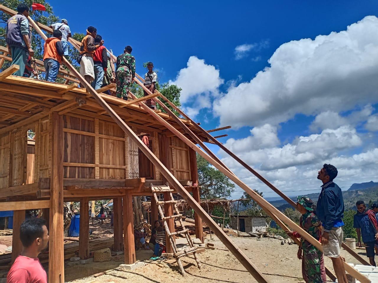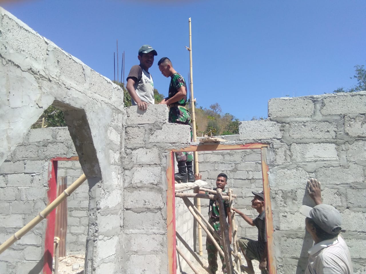 Personel Pos Turiscain saat ini masih fokus mengerjakan finishing rehab rumah milik Tobias warga Dusun Airai Desa Maumutin Kecamatan Raihat.