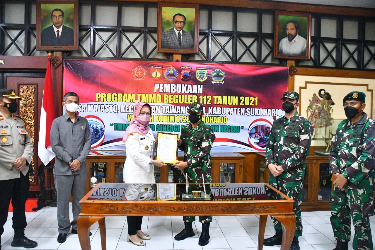 Pada pukul 09.00 Wib acara Pembukaan TMMD Reguler ke 112 TA 2021 Desa Majasto Kecamatan Tawangsari Kab. Sukoharjo dimulai oleh Bupati Sukoharjo dilanjutkan dengan penandatanganan Naskah Program TMMD dan penyerahan Naskah program TMMD dari Kepala Daerah/Bupati Sukoharjo kepada Dansatgas (Dandim 0726/Skh) yang disaksikan oleh Danrem 074/Wrt dan Muspida Kab. Sukoharjo.