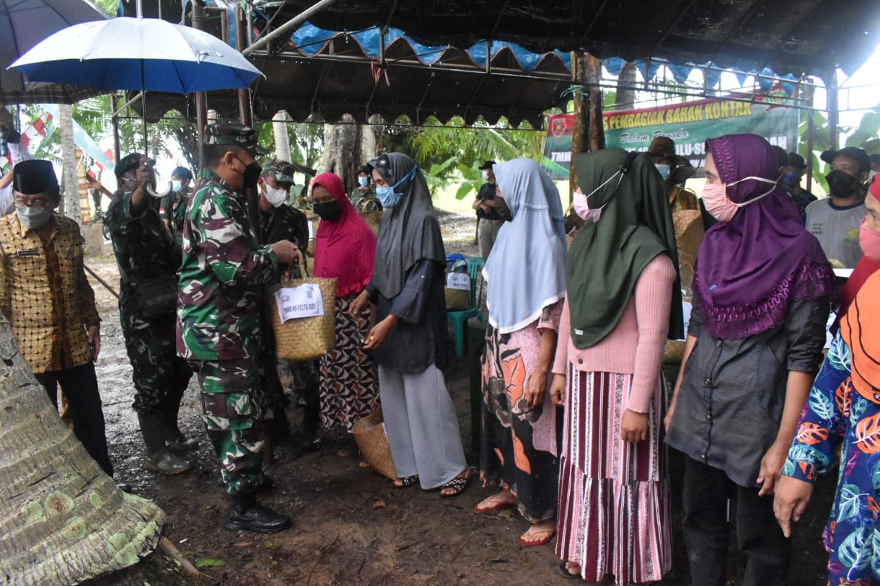 Untuk diketahui, selain meninjau pelaksanaan bakti sosial, Kasrem 101/Antasari bersama unsur forkopimda HST memberikan bahan kontak berupa sembako secara simbolis.(Pendim1002).