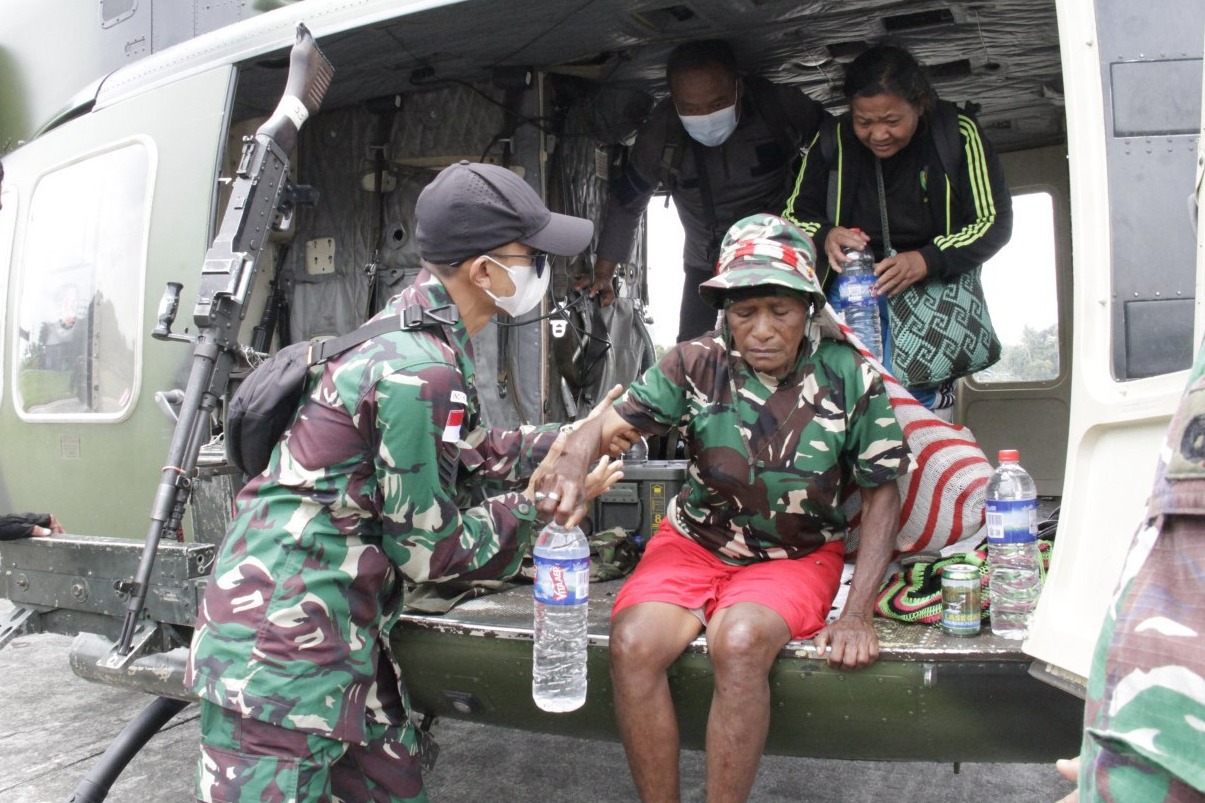 Pihaknya mengungkapkan kondisi masyarakat yang mengungsi dalam keadaan baik dan untuk memenuhi kebutuhan mereka, TNI akan mengirimkan bantuan bahan makanan dari Jayapura menggunakan hellycopter.