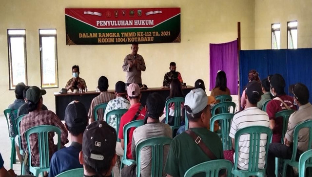 Bungonews.net,KOTABARU – Program sasaran Non Fisik TMMD ke 112 Kodim 1004/Kotabaru adalah diadakannya penyuluhan-penyuluhan yang di tujukan untuk memberikan pengertian kepada masyarakat. Salah satu penyuluhan yang dilaksanakan adalah Penyuluhan Hukum.