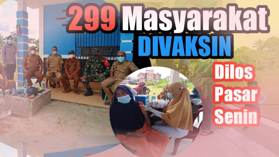 Vaksinasi masal yang digelar di los pasar Senin Embacang Gedang ini di ikuti oleh 299 peserta vaksin dari dusun Embacang Gedang , Dusun Sungai Tembang dan dusun Sungai Mancur