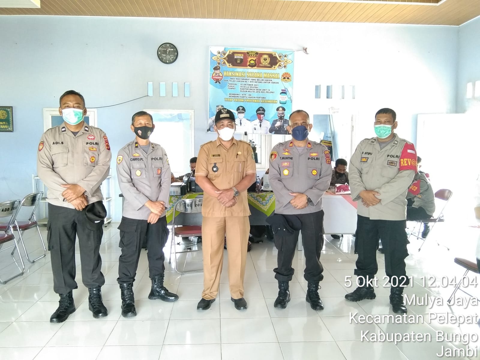 Hadir dalam Vaksinasi Masal Kapolsek Pelepat ,lptu Munthe S.H,M.H bersama anggota serta Pemerintah desa dan BPD Desa Mulya Jaya