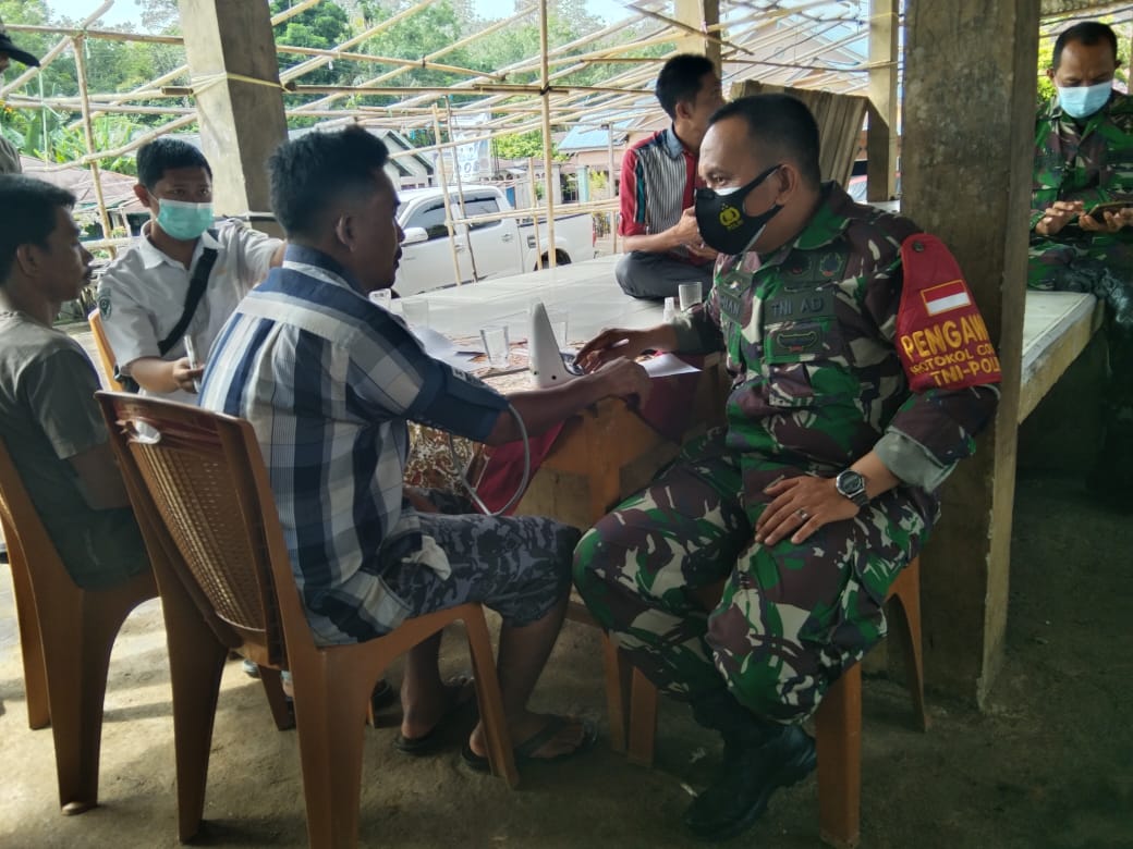 Vaksinasi yang dibantu oleh TNI dan vaksinator puskesmas kecamatan Muko – Muko Bathin VII ini digelar di Los Pasar Disun Tebing Tinggi