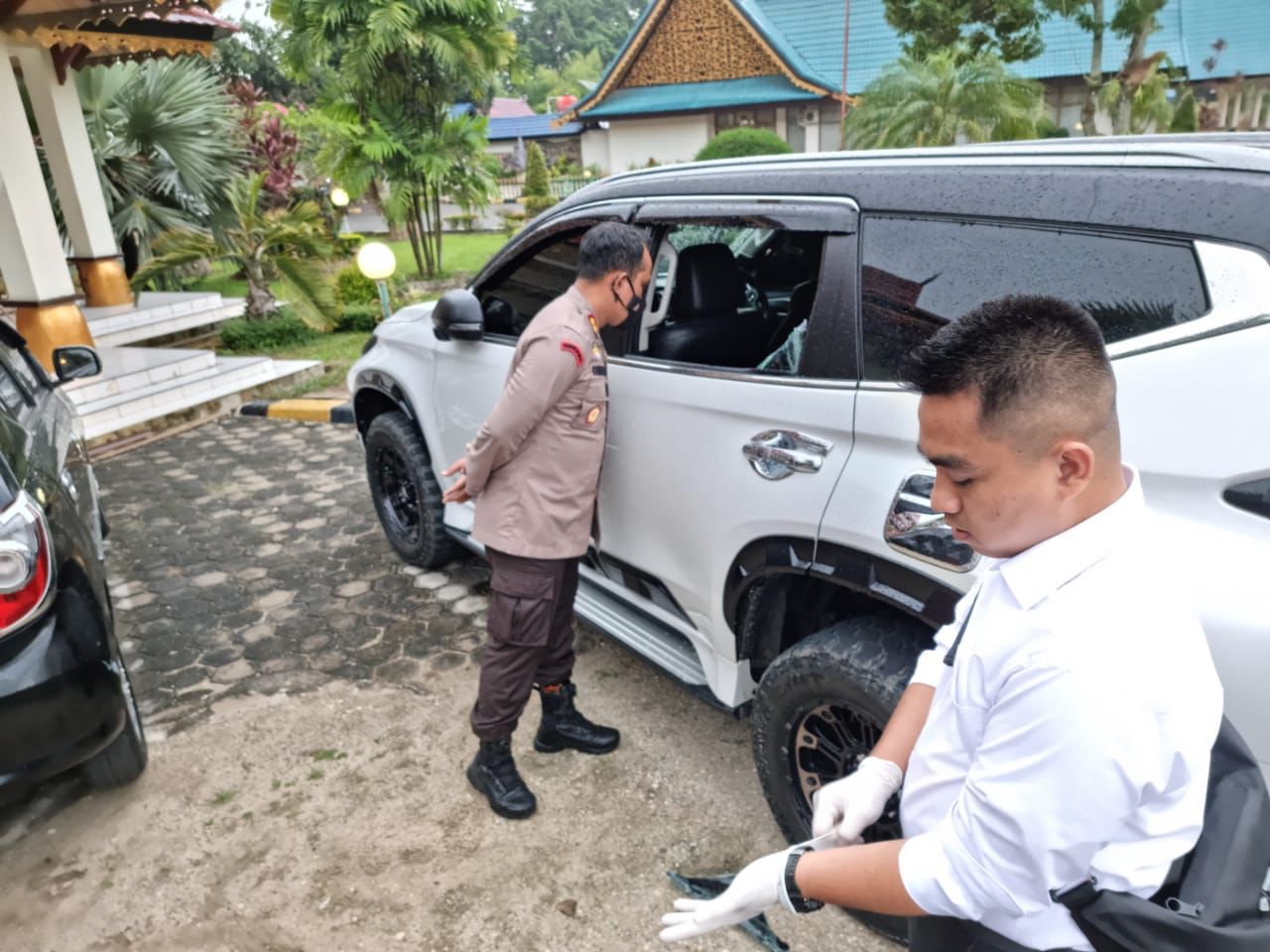 Sekitar pukul 17.00 wib, korban sholat di mushola rumah dinas Bupati Bungo, setelah selesai shalat ashar korban kembali ke mobilnya dan melihat kaca pintu tengah sebelah kiri sudah pecah kemudian korban mengecek uang korban yang ditaruh di lantai belakang mobil sudah tidak ada lagi.