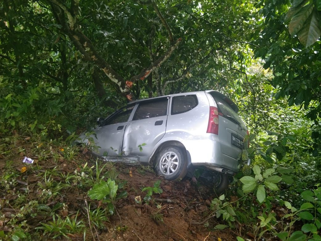 Bungonews.net, BUNGO- Kecelakaan lalu lintas kembali terjadi di Jalan Durian dusun Tebat kecamatan Muko- Muko Bathin VII. Kamis (17/11/21) sekira pukul 7,53 sebuah mobil Toyota Avanza warna putih silver nyunsep kejurang dan menabrak pohon rambutan