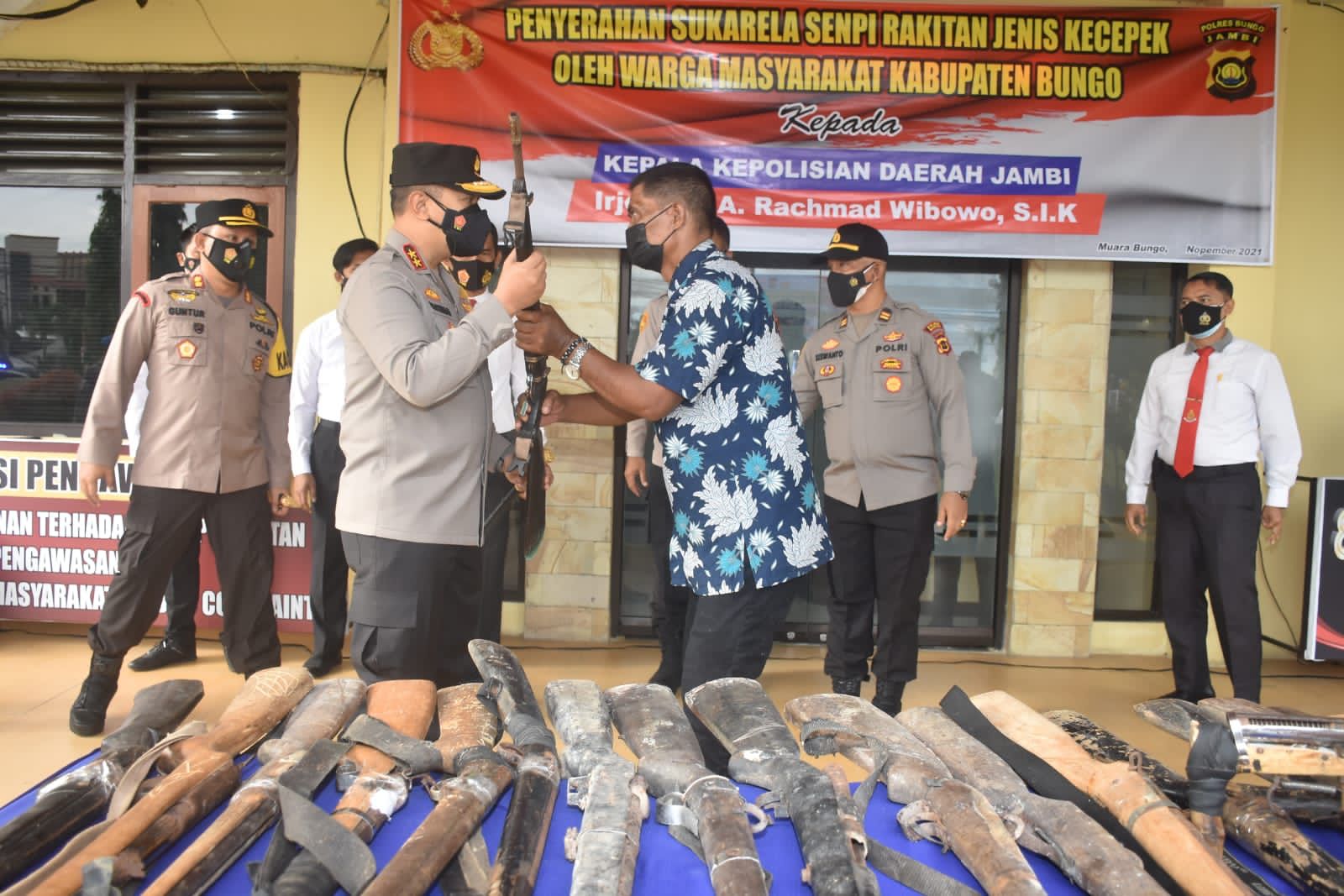 Sementara itu, Kapolres Bungo AKBP Guntur Saputro menambahkan, sebanyak 25 pucuk kecepek yang diserahkan melalui tangan Kapolda Jambi, merupakan bagian kesadaran warga Kabupaten Bungo.