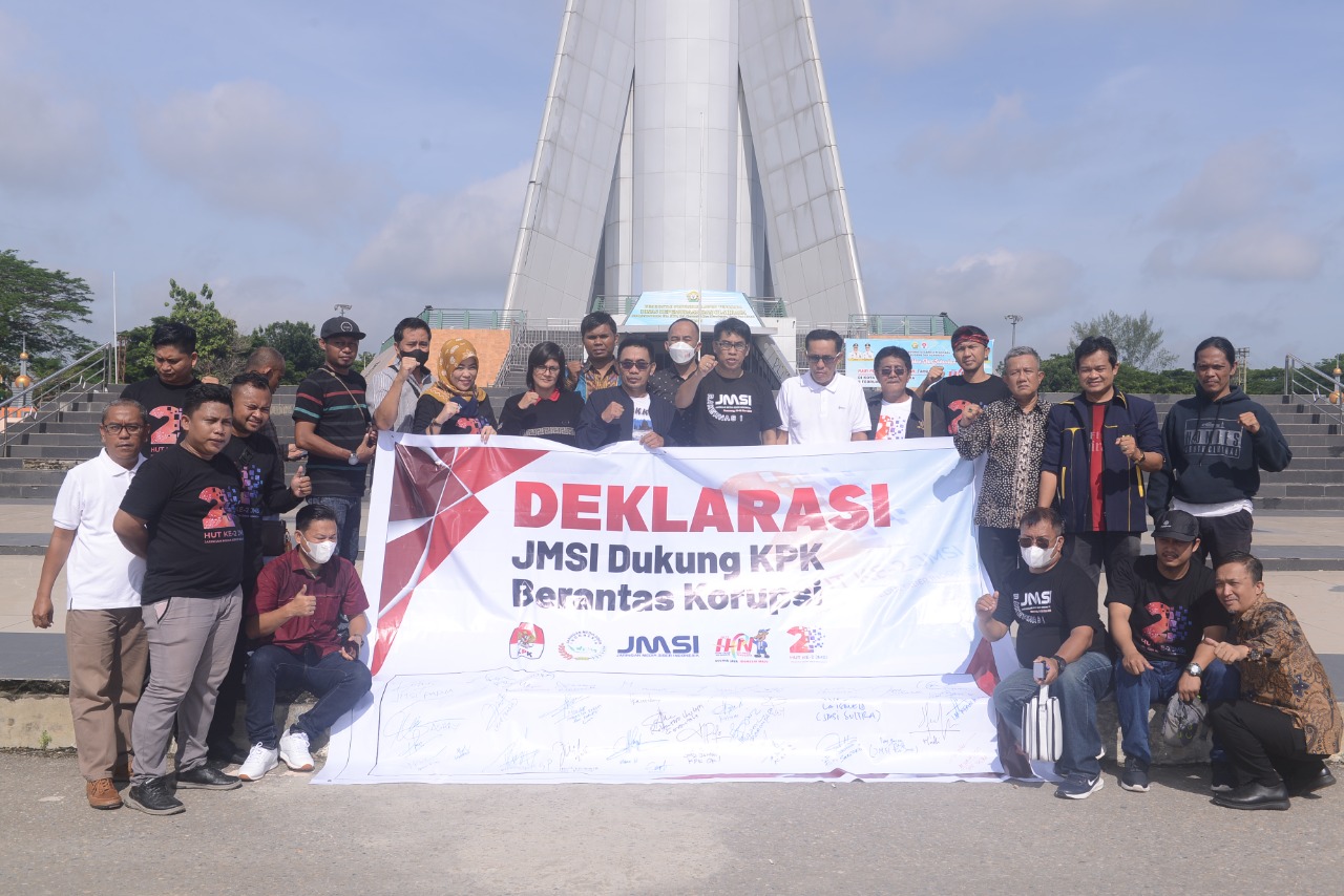 Mewakili Ketua Umum Teguh Santosa, Sekretaris Jenderal (Sekjen) JMSI Mahmud Marhaba bersama pengurus daerah (Pengda) lainnya menyatakan siap mendukung pemberantasan korupsi yang dilakukan oleh KPK RI.