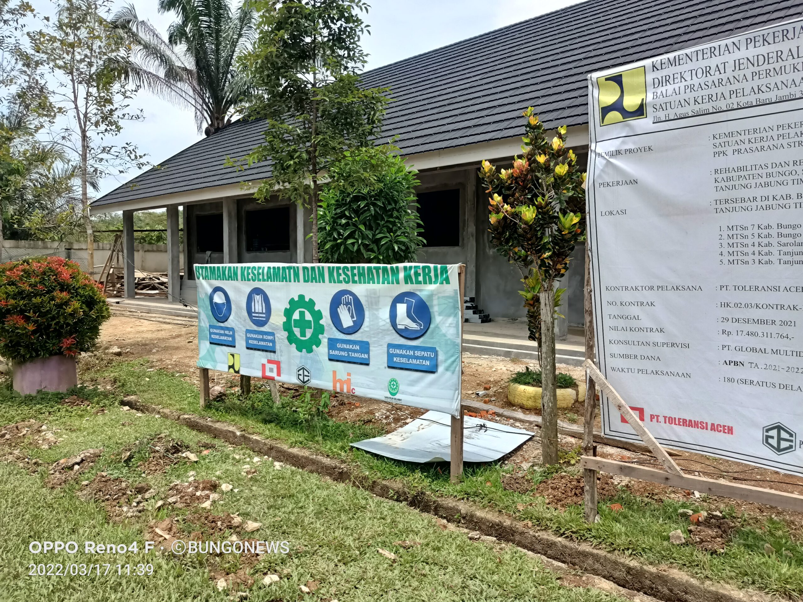 Bungonews.net, BUNGO – Proyek rehabilitasi dan renovasi 5 unit Mts tahun 2021 yang dikerjakan tahun 2022 senilai Rp 17 miliar dua unit diantaranya Mtsn 5 dan Mtsn 7 Bungo yang diduga biaya bongkar bangunan dibebankan kepada pihak sekolah ditanggapi oleh satker Prasarana permukiman Jambi pada   dirjen cipta karya