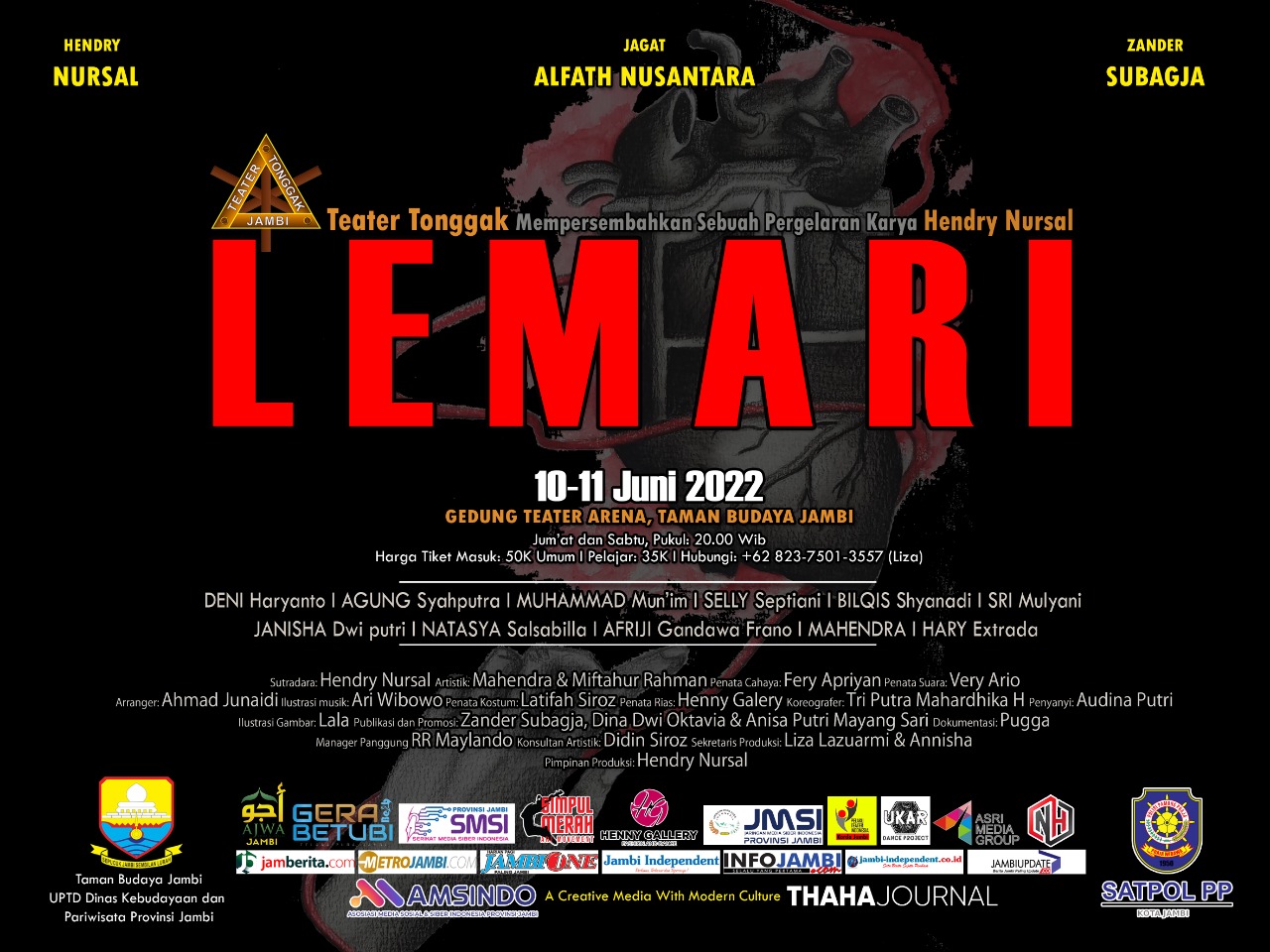 “Semoga, pergelaran ‘LEMARI’ dari teater tonggak Jambi ini mampu meneruskan usaha pencarian ekspresi teater yang tak pernah luntur dan dapat menginformasikan pesan moral serta budaya kepada masyarakat luas. Sangat terlihat akan berefek bagi pendidikan,” Tuturnya.
