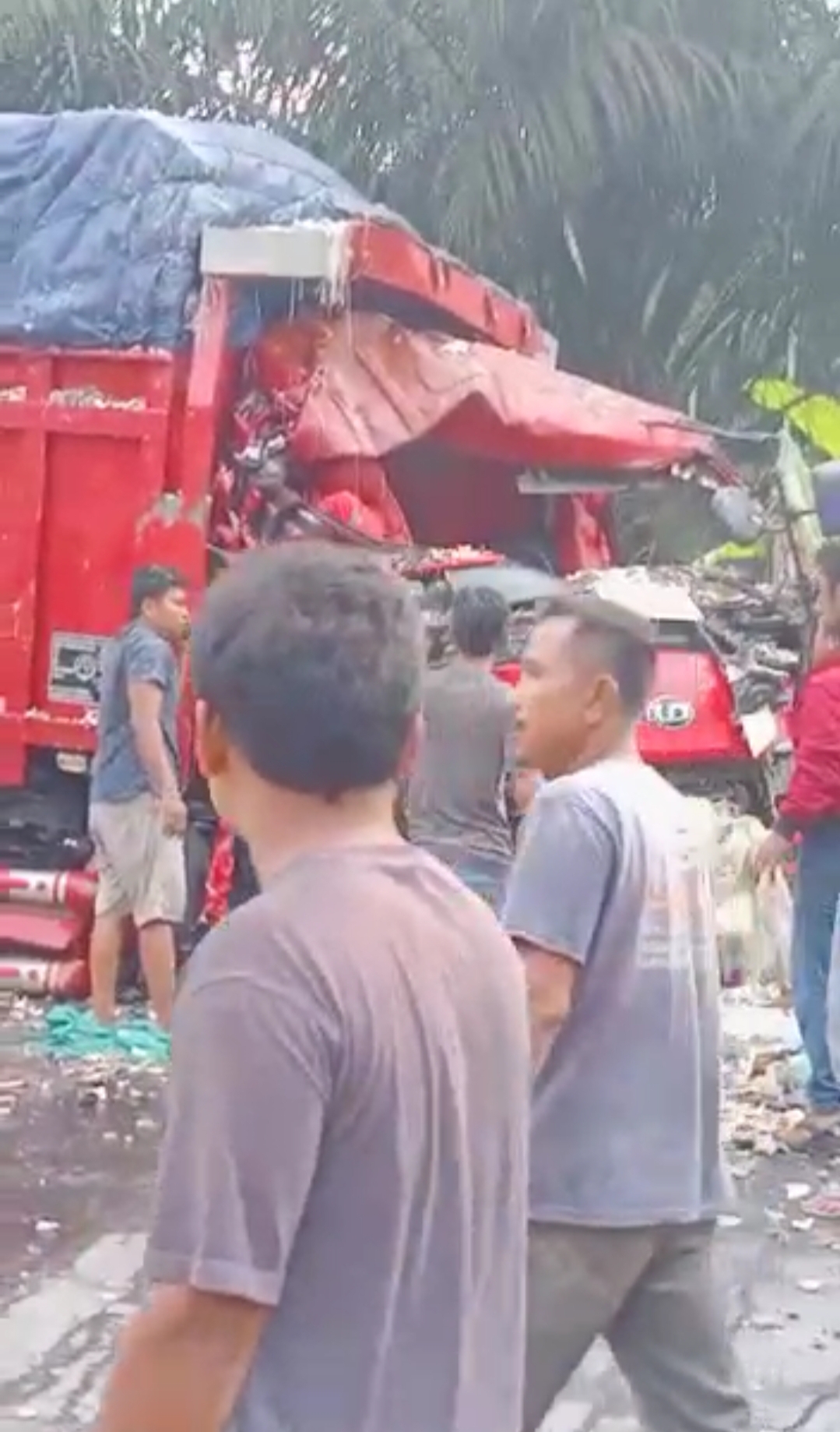“Mobil truk merah sempat mengerem, namun truk datang dari arah Sumsel oleng dan memakan badan jalan. Tabrakan tidak terhindarkan,” ungkap Dedi, warga sekitar.