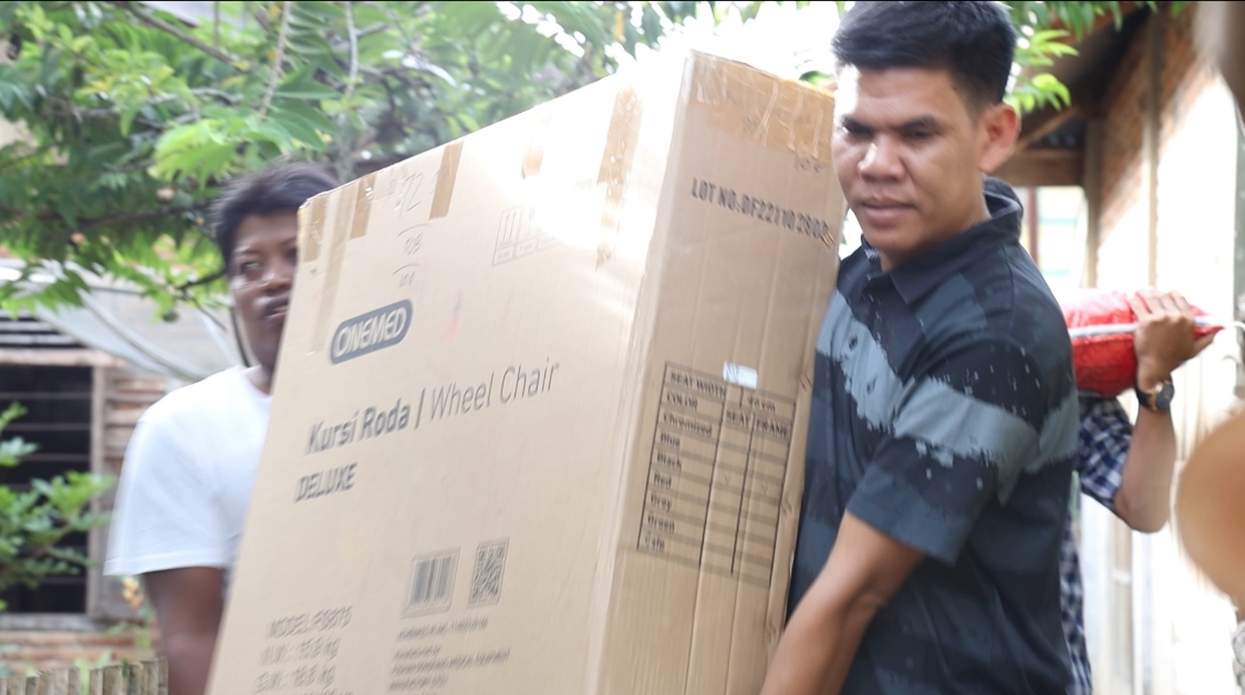Direktur Athaya Garden Dedi Hardani S.Pd.I langsung mendatangi kediaman rumah Hengki dengan membawakan sebuah kursi roda. Bantuan lainnya, berupa sembako dan uang tunai.