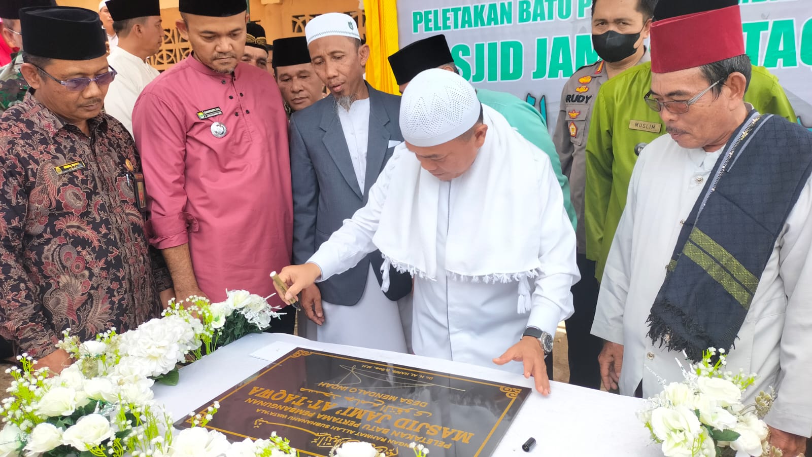 Bungonews.net, MUAROJAMBI – Gubernur Jambi, Al Haris melakukan peletakan batu pertama renovasi Masjid Jami’ At-Taqwa Desa Mendalo Indah, Kecamatan Jambi Luar Kota, Kabupaten Muarojambi, Jumat (17/2/2023).