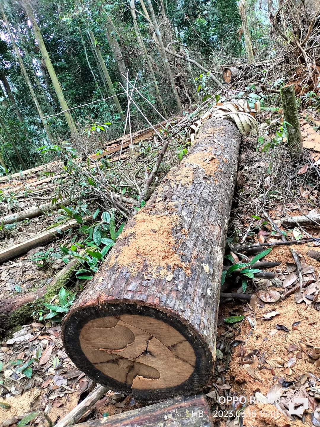 ” Saya saksikan langsung hutan banyak kayu dihutan Sungai Telang di tebangi oleh oknum ” tuturnya (5/04/2023) sembari mengirim foto kayu yang ditebangi yang diduga tanpa izin tersebut