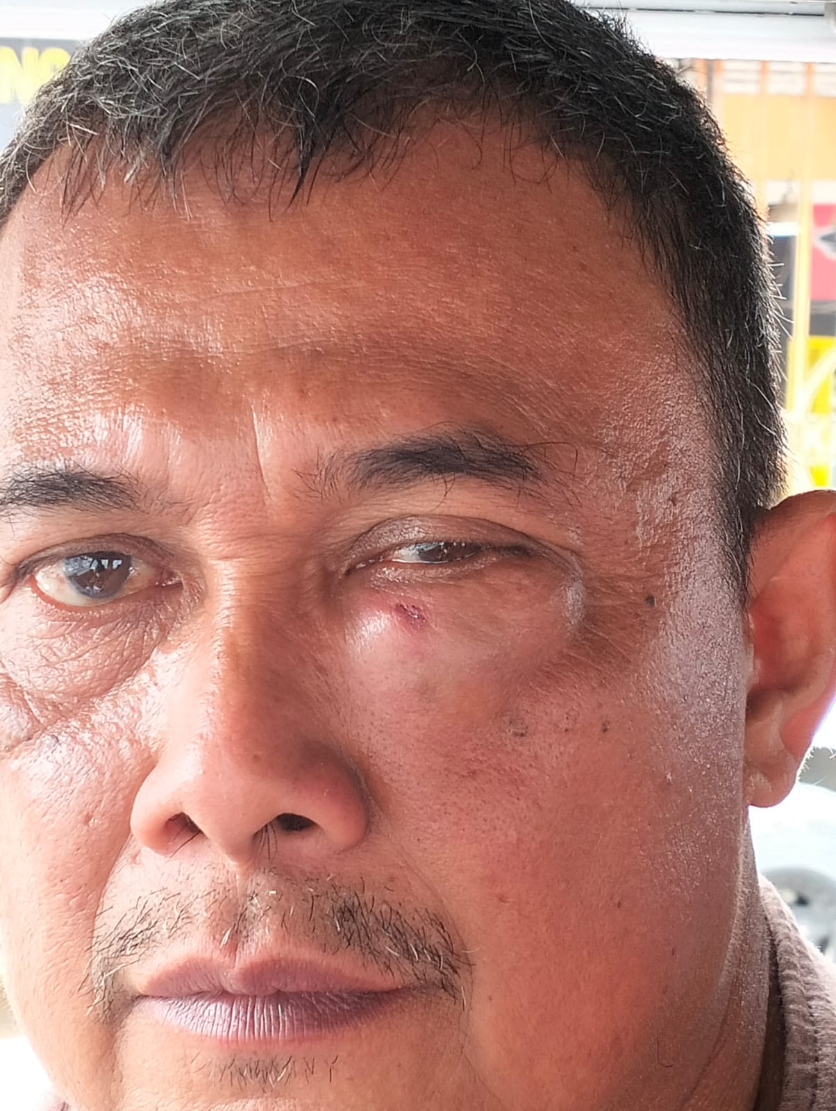 ” Saya permisi untuk mengisi dari depan karena saya buru- buru mau meliput di taman makam pahlawan ternyata ada oknum pelansir tidak terima , saya dipukul oleh beberapa orang ” Tutur korban memperlihatkan bekas pukulan yang mendarat diwajahnya (17/08/2023)