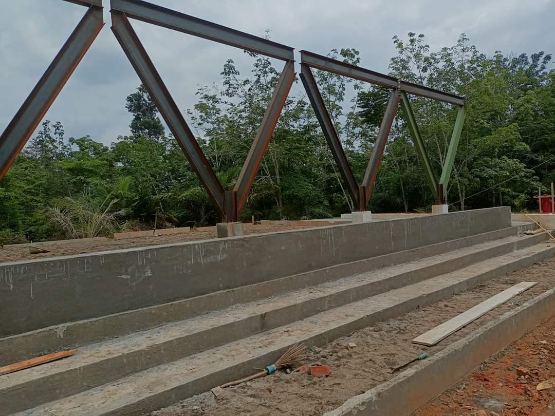” Begini lah kondisinya pak , kami hanya 4 orang pekerjanya ” Ujar salah seorang pekerja bangunan sembari mengaku kontraktor pelaksana berasal dari Jambi