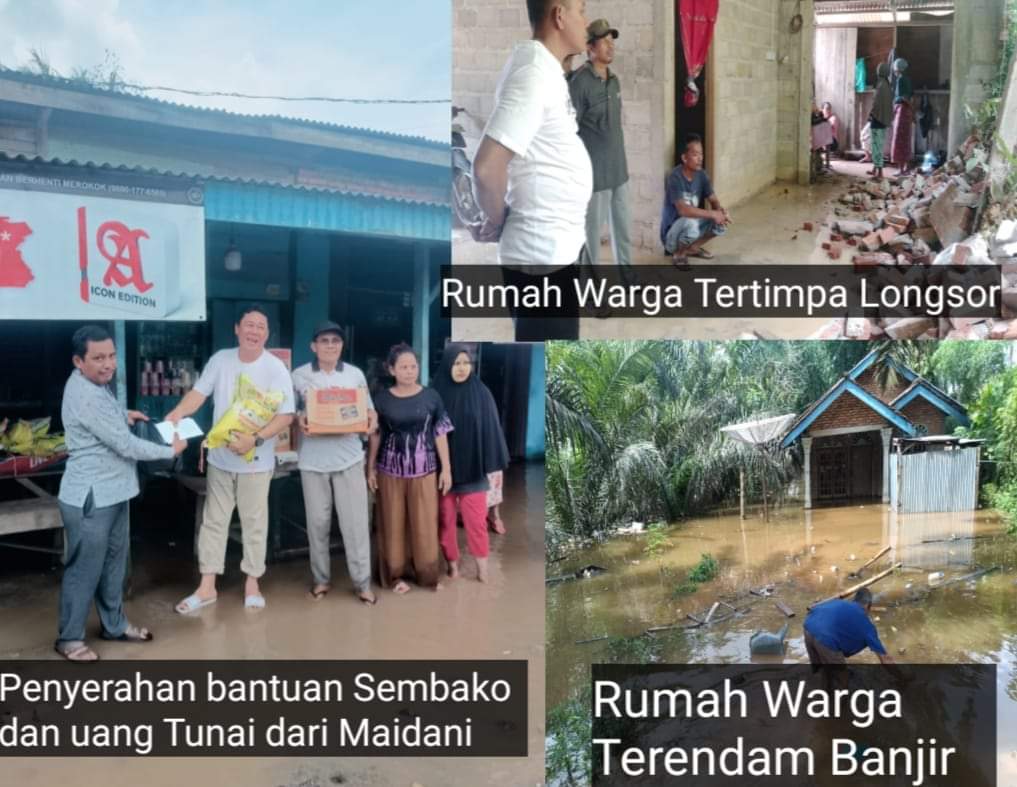 Bantuan sembako dan uang tunai dari Maidani ini diserahkan langsung kepada 8 KK yang terendam banjir dan 1 KK yang rumahnya ditimpa longsor