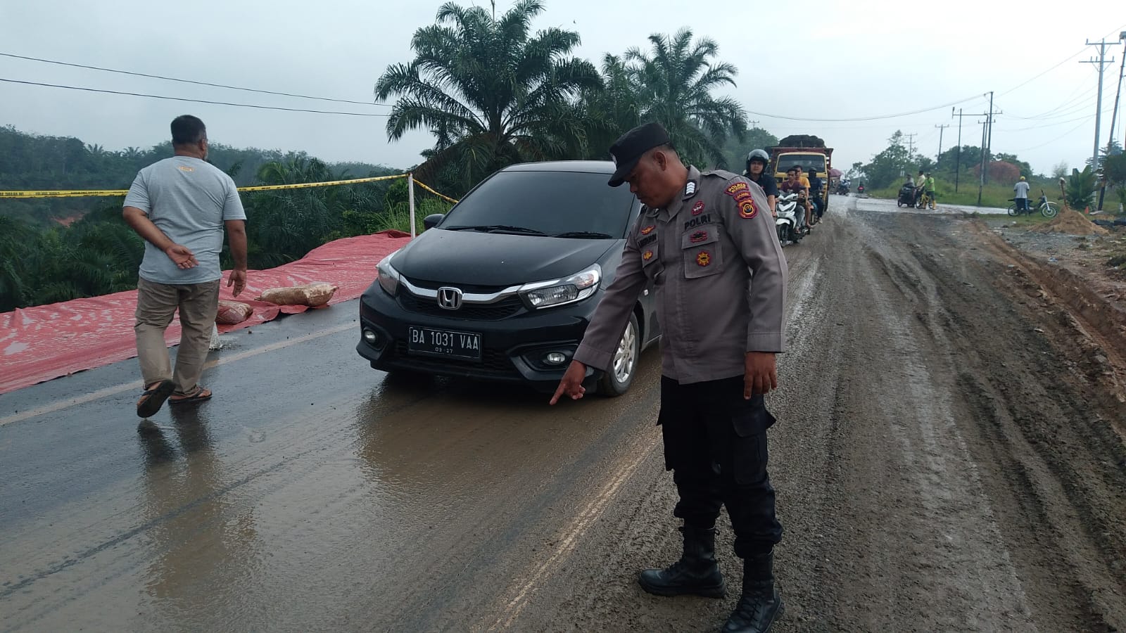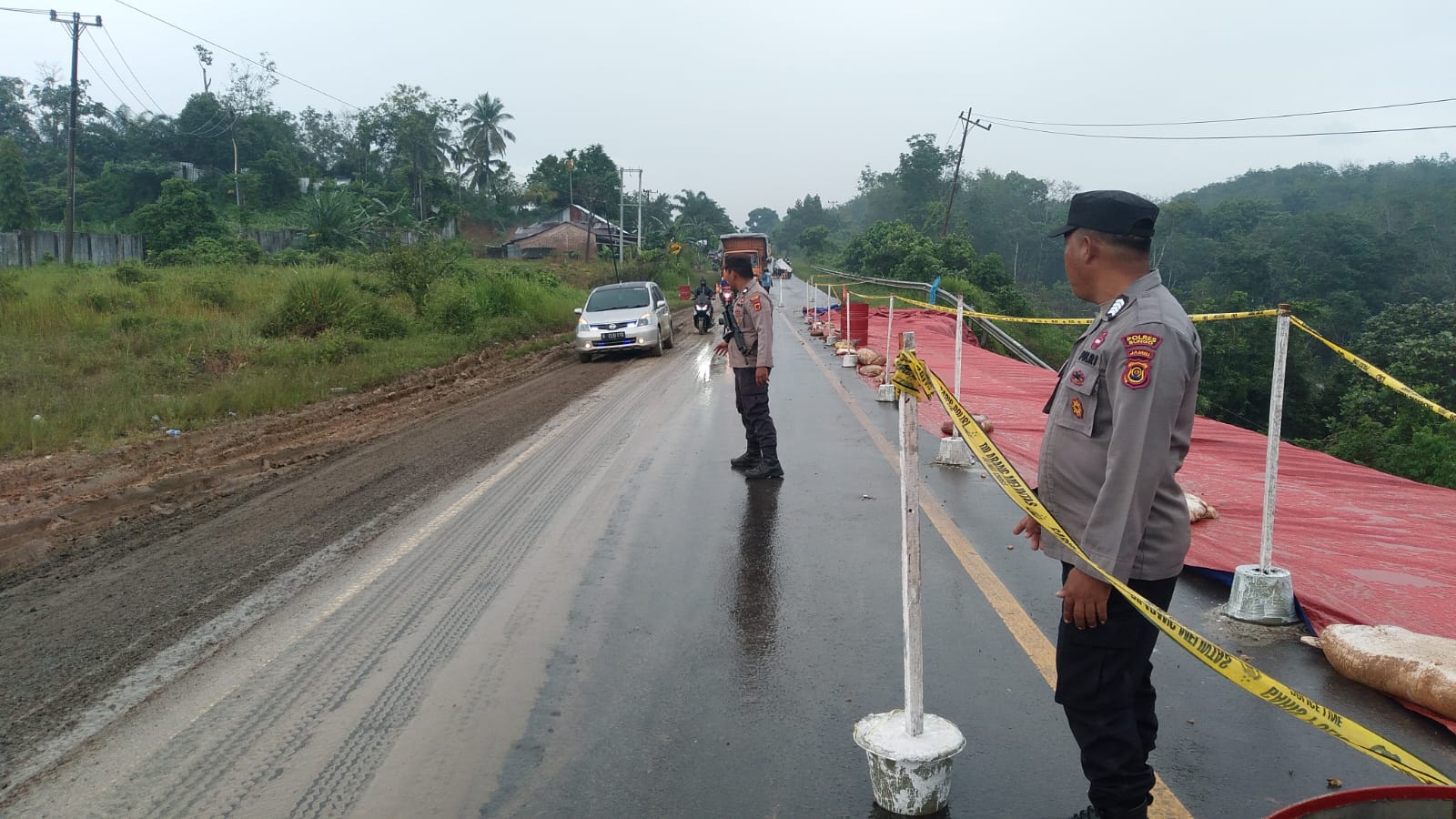 Untuk mengantisifiasi kecepakaan dan hal yang tidak diinginkan pihak kepolisian Sektor Jujuhan dibantu oleh masyarakat setempat mengatur arus lalu lintas sistem buka tutup disaat kendaraan melihtasi ruas jalan yang retak tersebut