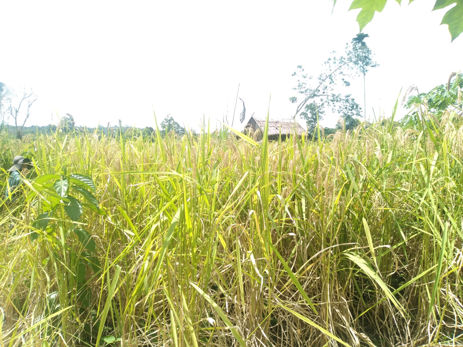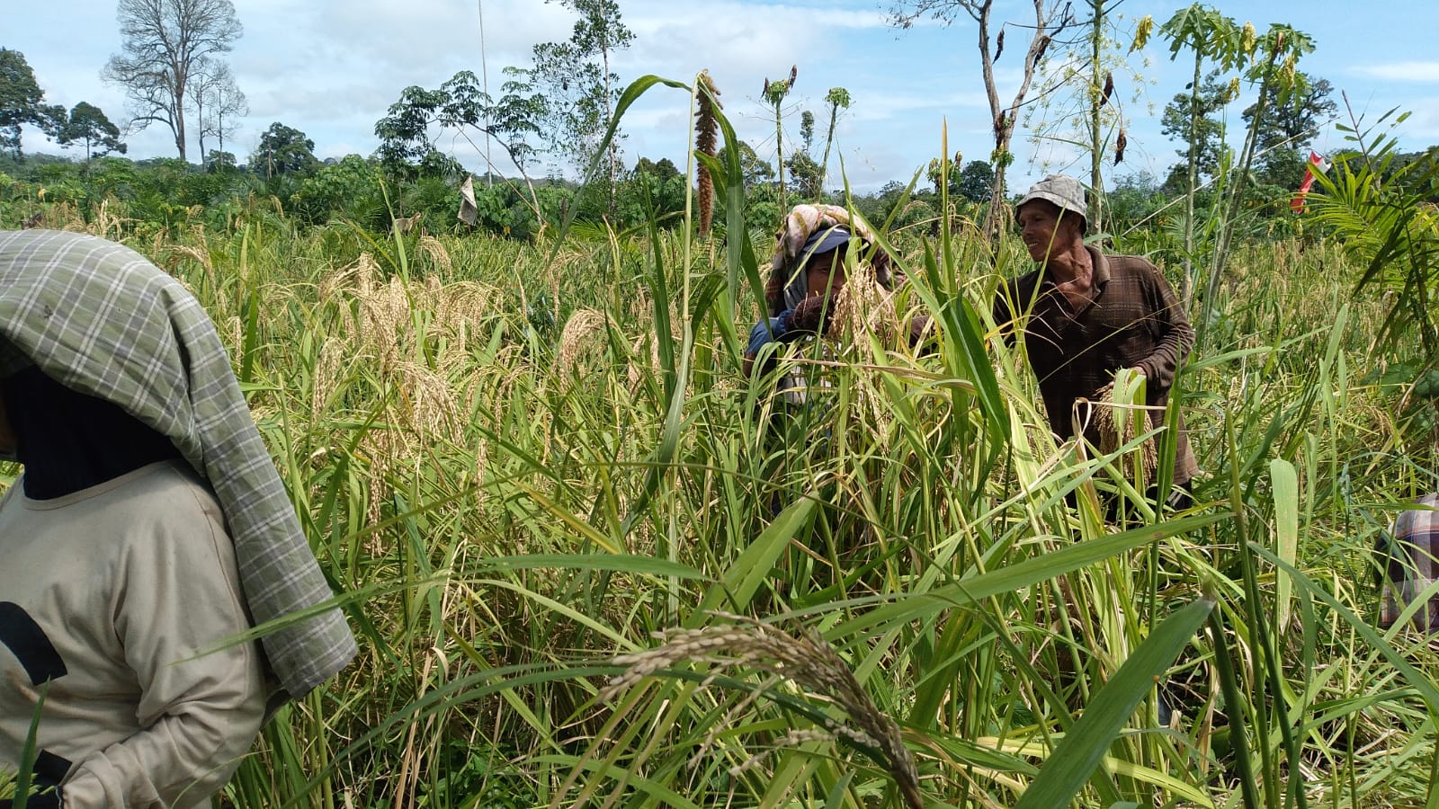 ” Alhamdulillah hasil panen tercapai 50 karung gabah kering berasal dari padi ladang yang kami tanam.tanpa membakar lahan ” tutur nya