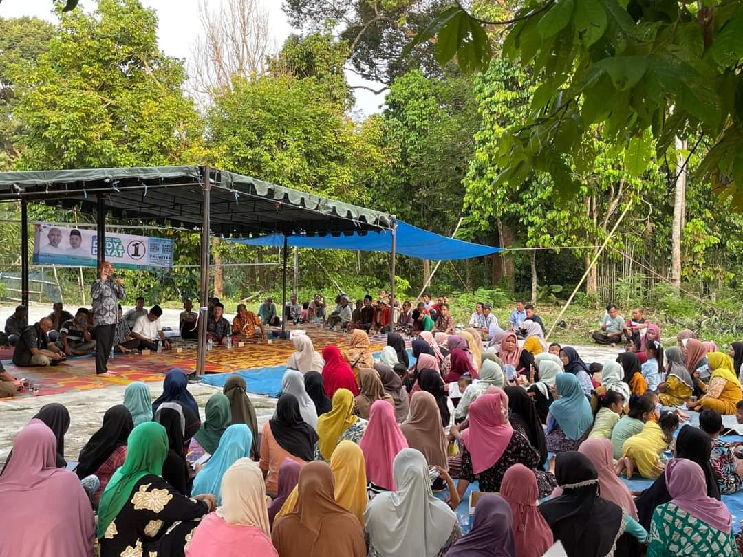 Bungonews.net,Bungo – Tak kenal lelah, Calon Bupati Bungo nomor urut 1, Dedy Putra terus menyambangi masyarakat di dusun-dusun untuk bersilaturahmi dan berdialog secara langsung. Kali ini mengunjungi Dusun Paku Aji, Kecamatan Tanah Sepenggal Lintas, Selasa (22/10/2024).