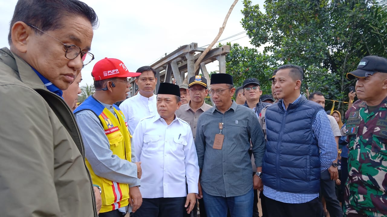 ” Bersama H.Bakri,wakil bupati Bungo, PUPR dan kepala BPJN VI Jambi ,TNI dan Polri melihat kondisi jalan putus ini sekaligus mengecek pengerjaan jembatan darurat Bailey ” Ucapnya