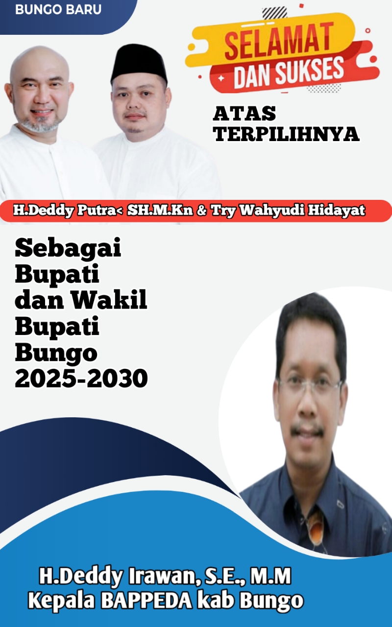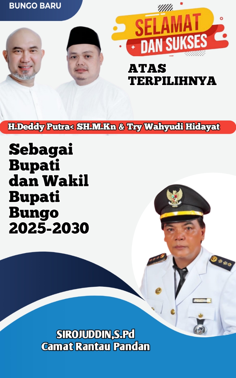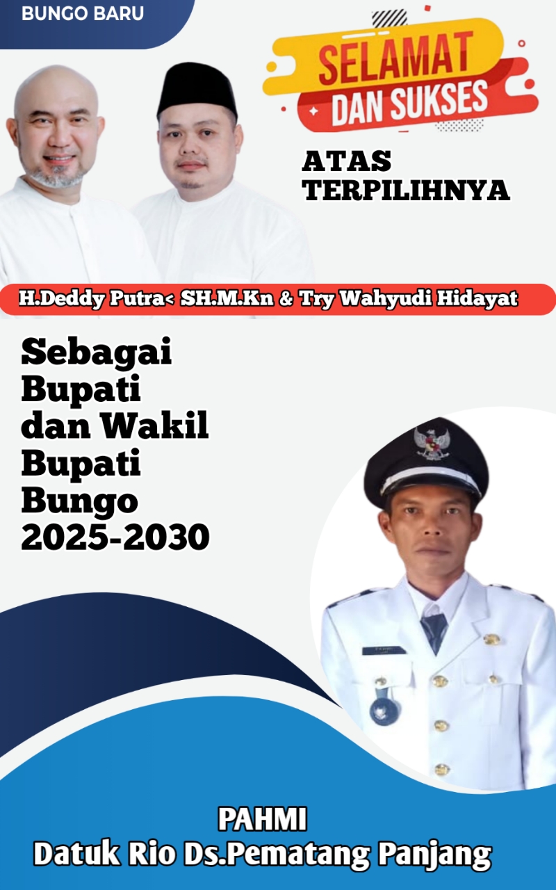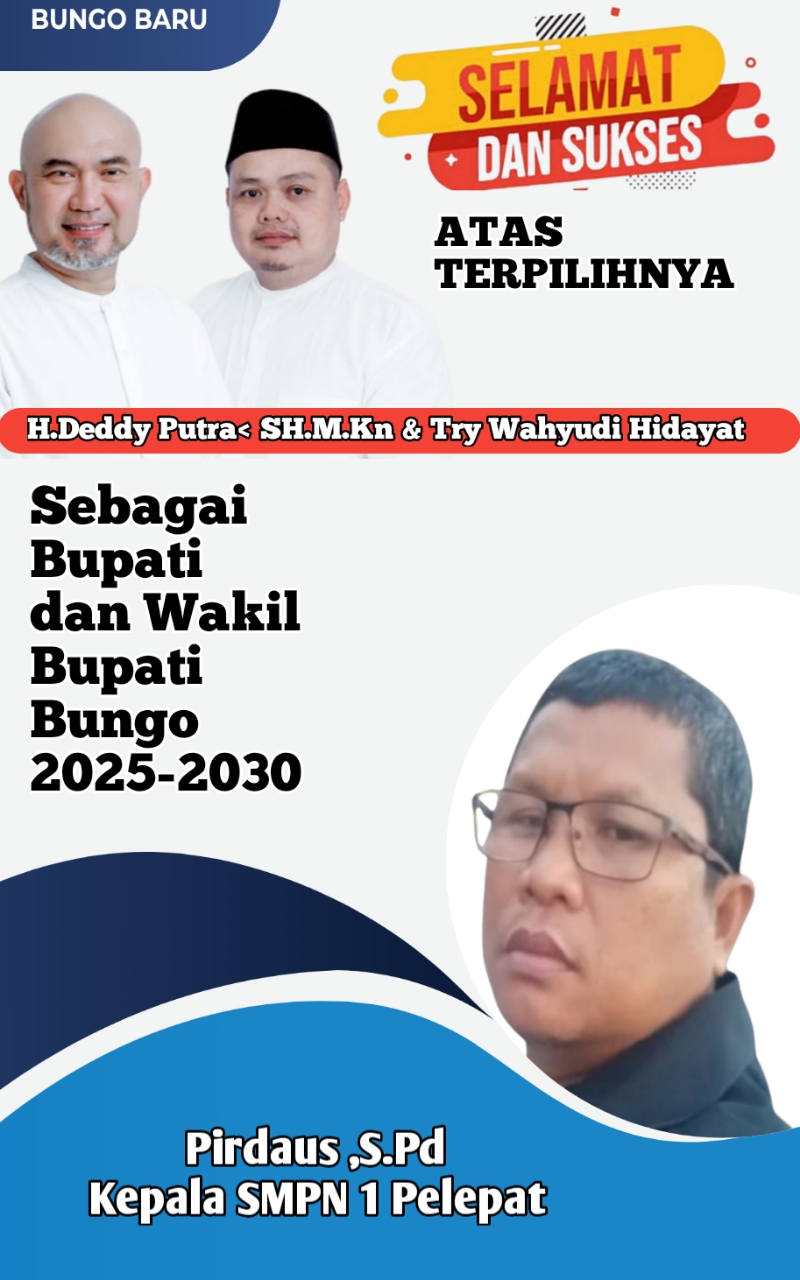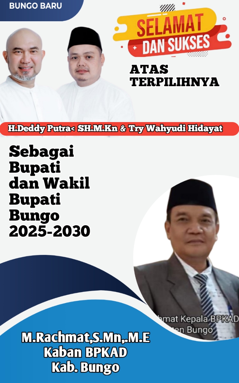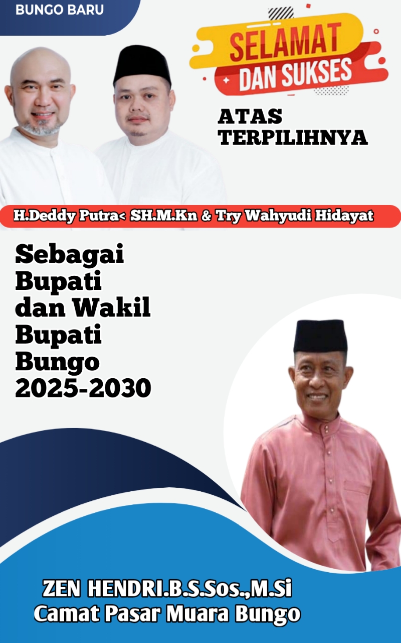 Selamat atas terpilihnya Dedy – Dayat Sebagai Bupati dan Wakil BungoRedaksi26 April 202526 April 2025PERISTIWA2416 Dilihat Post Views: 2,416 Jangan LewatkanDugaan Korupsi Program IT Bank 9 Jambi Masuk Tahap Penyelidikan : Hadi Prabowo Serahkan Dokumen Ke Subdit TipidkorRatusan Kepsek SD–SMP di Bungo Bakal Bergeser: Antara Regulasi, Kepentingan, dan Kegelisahan yang Tak TerucapJadi Tuan Rumah, SDN 147 Kampung Baru Sepunggur Sukses Menyelenggarakan OSN -O2SN Tingkat Kecamatan Bathin II BabekoSMAN 9 Bungo Gelar Upacara Pelepasan 76 Siswa Kelas XII Dengan kesederhanaanKapolsek & Kanit Reskrim di Rohil Dicopot Usai Warga Demo soal NarkobaMusim Kemarau Tiba, Armada Rusak, Anggaran Penyelamatan Dan Evakuasi Menipis : Siapa Yang Bermain ?