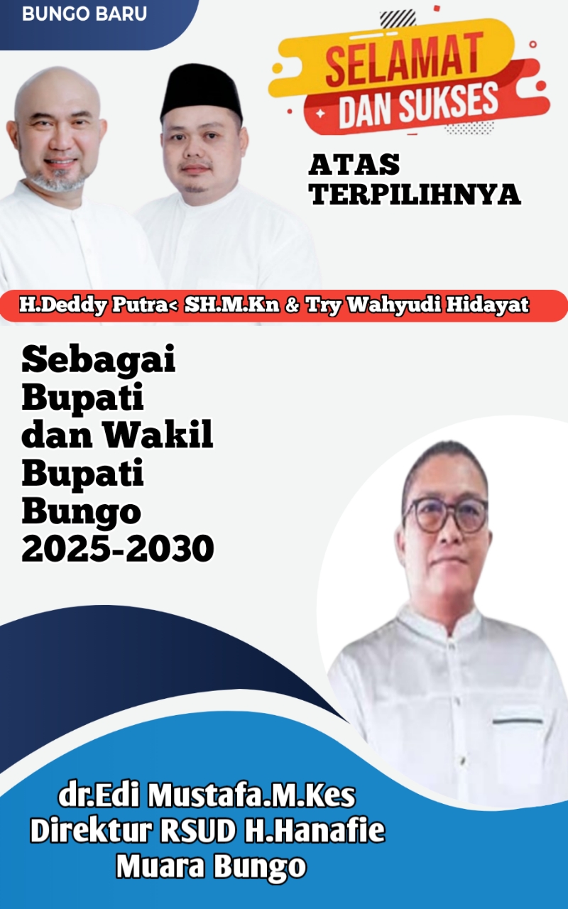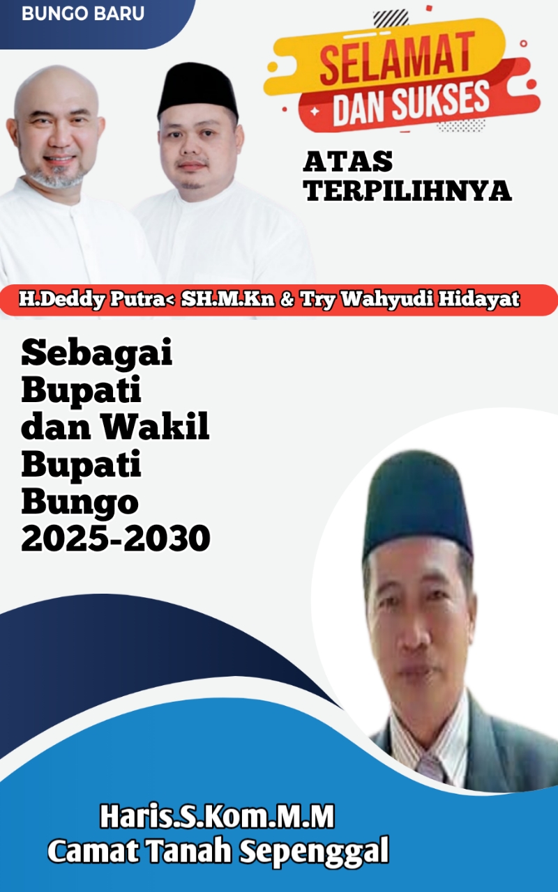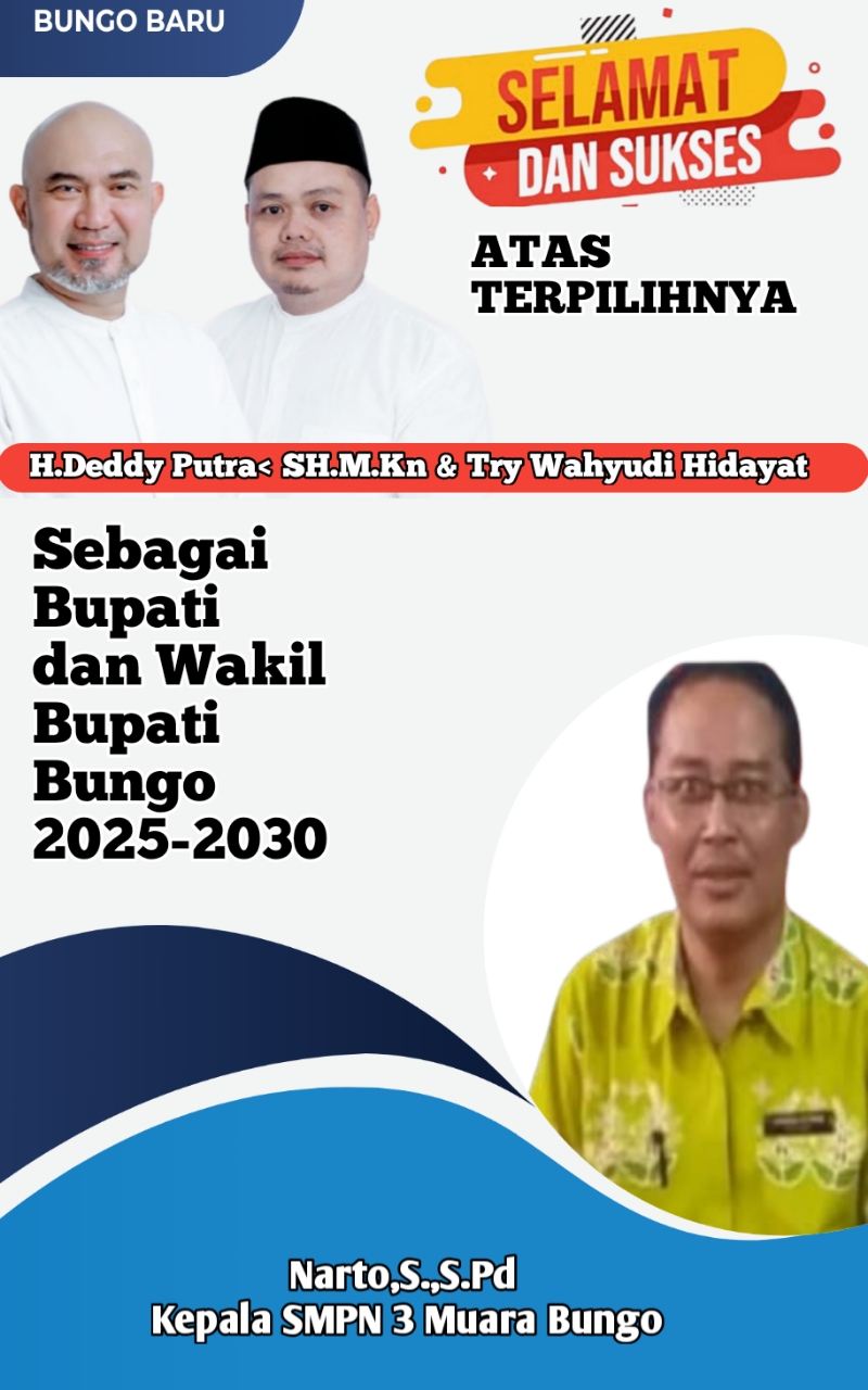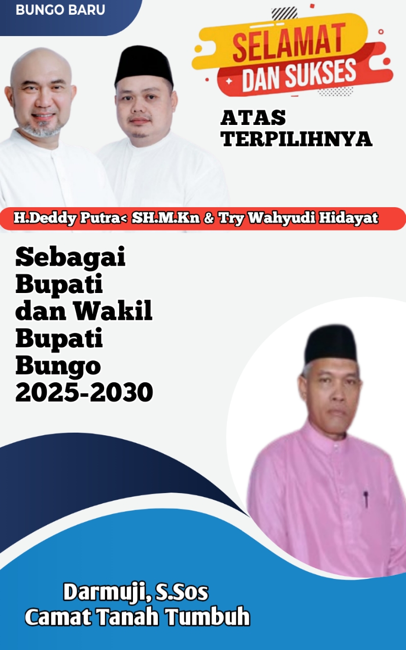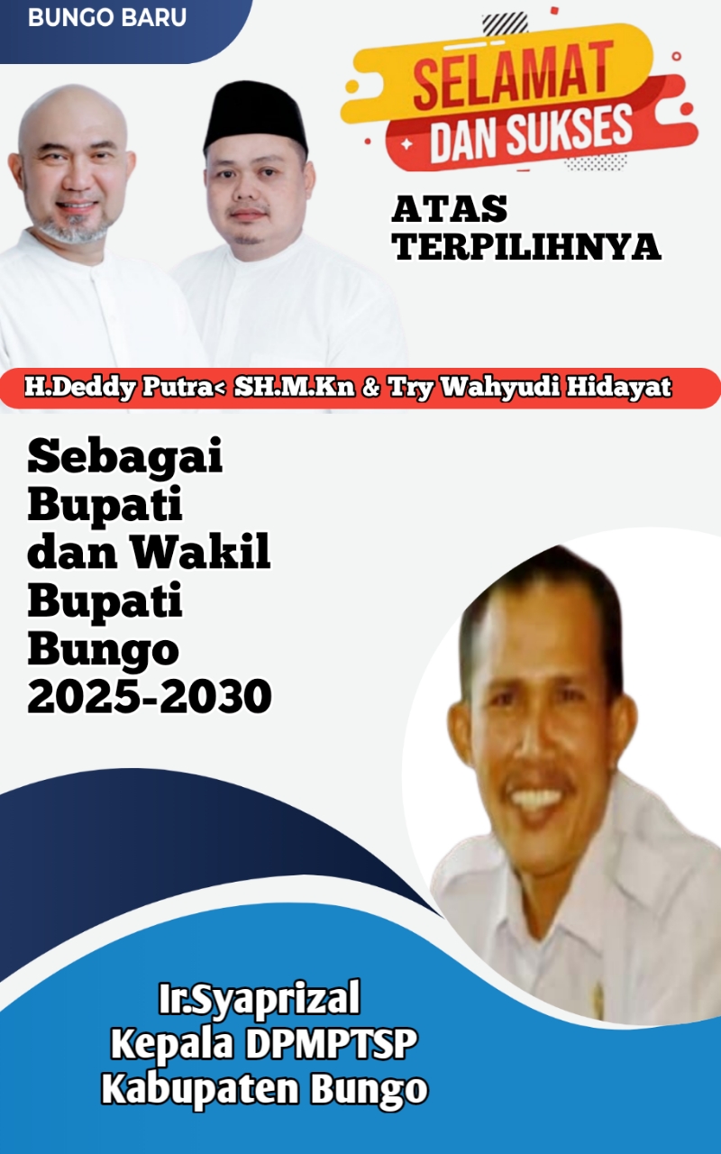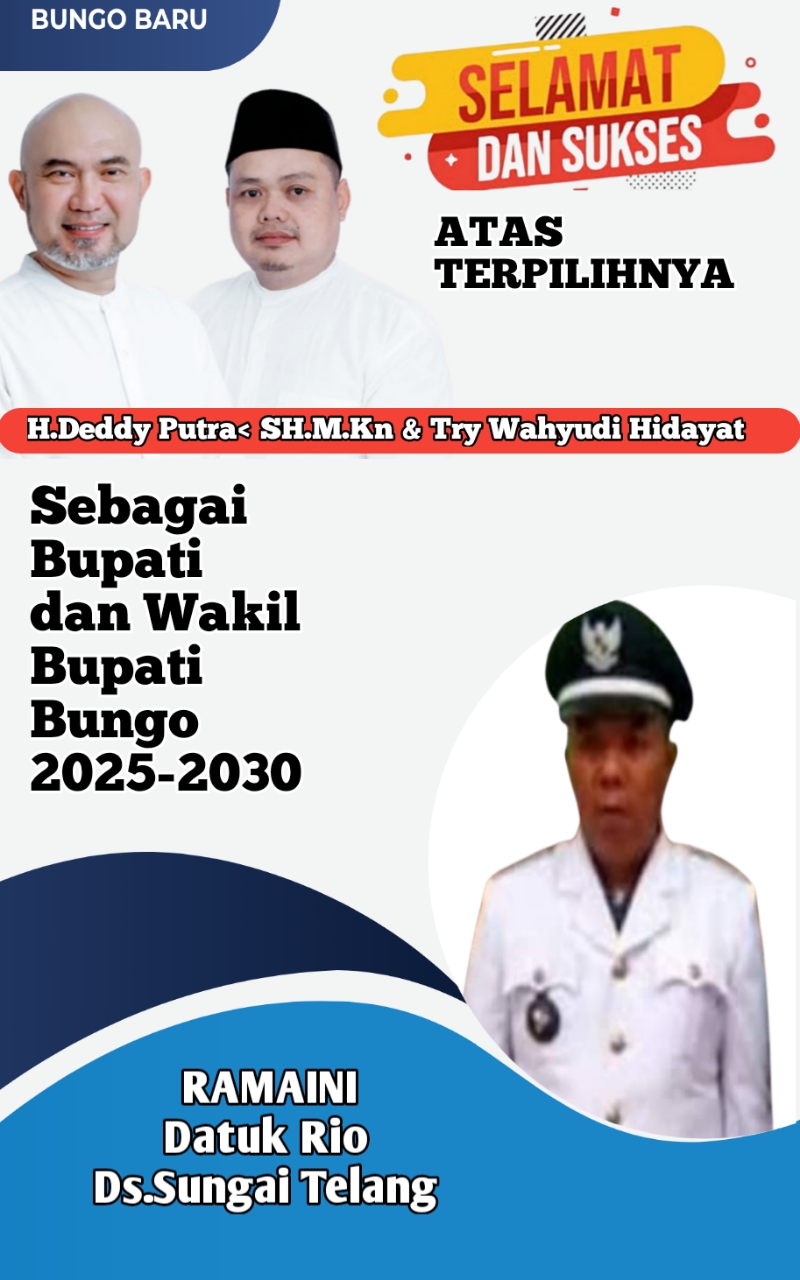 Selamat atas terpilihnya Dedy – Dayat Sebagai Bupati dan Wakil BungoRedaksi26 April 202526 April 2025PERISTIWA2416 Dilihat Post Views: 2,416 Jangan LewatkanDugaan Korupsi Program IT Bank 9 Jambi Masuk Tahap Penyelidikan : Hadi Prabowo Serahkan Dokumen Ke Subdit TipidkorRatusan Kepsek SD–SMP di Bungo Bakal Bergeser: Antara Regulasi, Kepentingan, dan Kegelisahan yang Tak TerucapJadi Tuan Rumah, SDN 147 Kampung Baru Sepunggur Sukses Menyelenggarakan OSN -O2SN Tingkat Kecamatan Bathin II BabekoSMAN 9 Bungo Gelar Upacara Pelepasan 76 Siswa Kelas XII Dengan kesederhanaanKapolsek & Kanit Reskrim di Rohil Dicopot Usai Warga Demo soal NarkobaMusim Kemarau Tiba, Armada Rusak, Anggaran Penyelamatan Dan Evakuasi Menipis : Siapa Yang Bermain ?