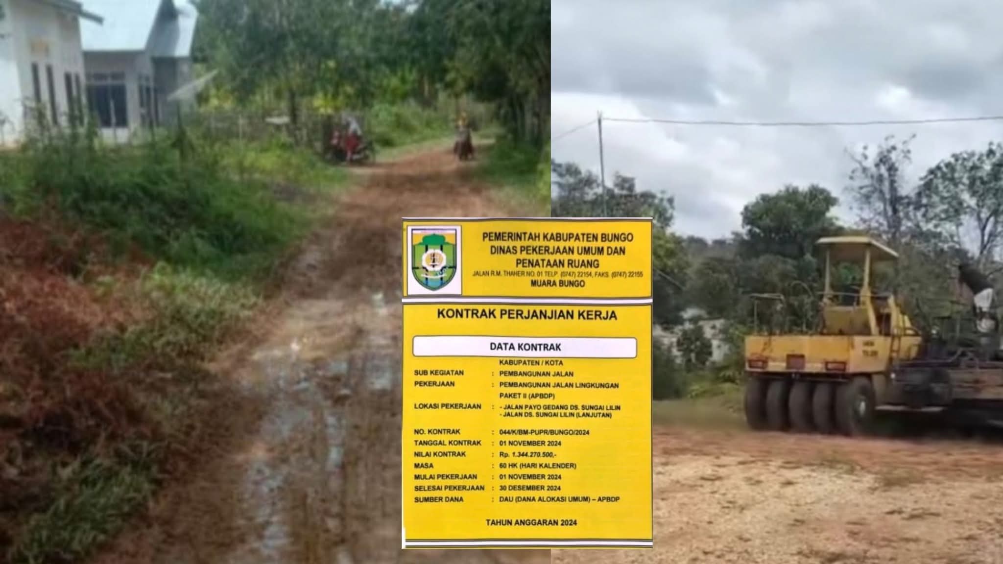 Bungonews.net, Bungo – Proyek pembangunan jalan lingkungan ( Jaling ) dusun Sungai Lilin kecamatan Tanah Sepenggal Lintas kabupaten Bungo – Jambi  tahun anggaran 2024 yang tidak rampung alias gagal  dikerjakan 100 persen oleh CV.GIM  diakui akan dilanjutkan melalui anggaran pendapatan  belanja daerah perubahan ( APBDP ) tahun 2025  mendatang