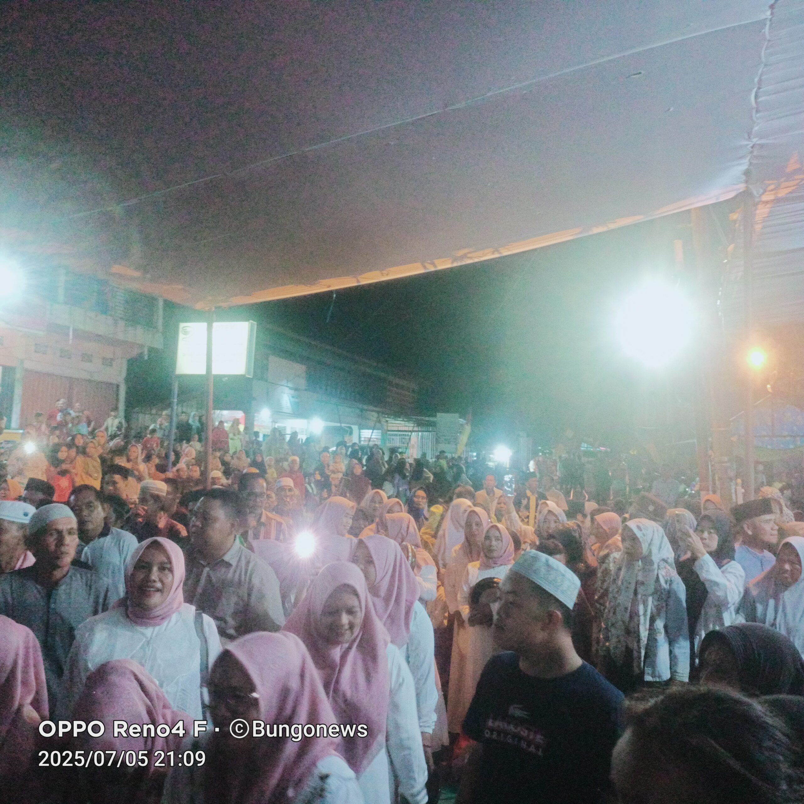 Dikatakannya, antusias masyarakat menginginkan perubahan menuju Bungo Baru tidak pernah kendor buktinya acara syukuran yang di gelar malam ini murni sumbangan dari masyarakat secara suka rela untuk mensukseskan acara tersebut