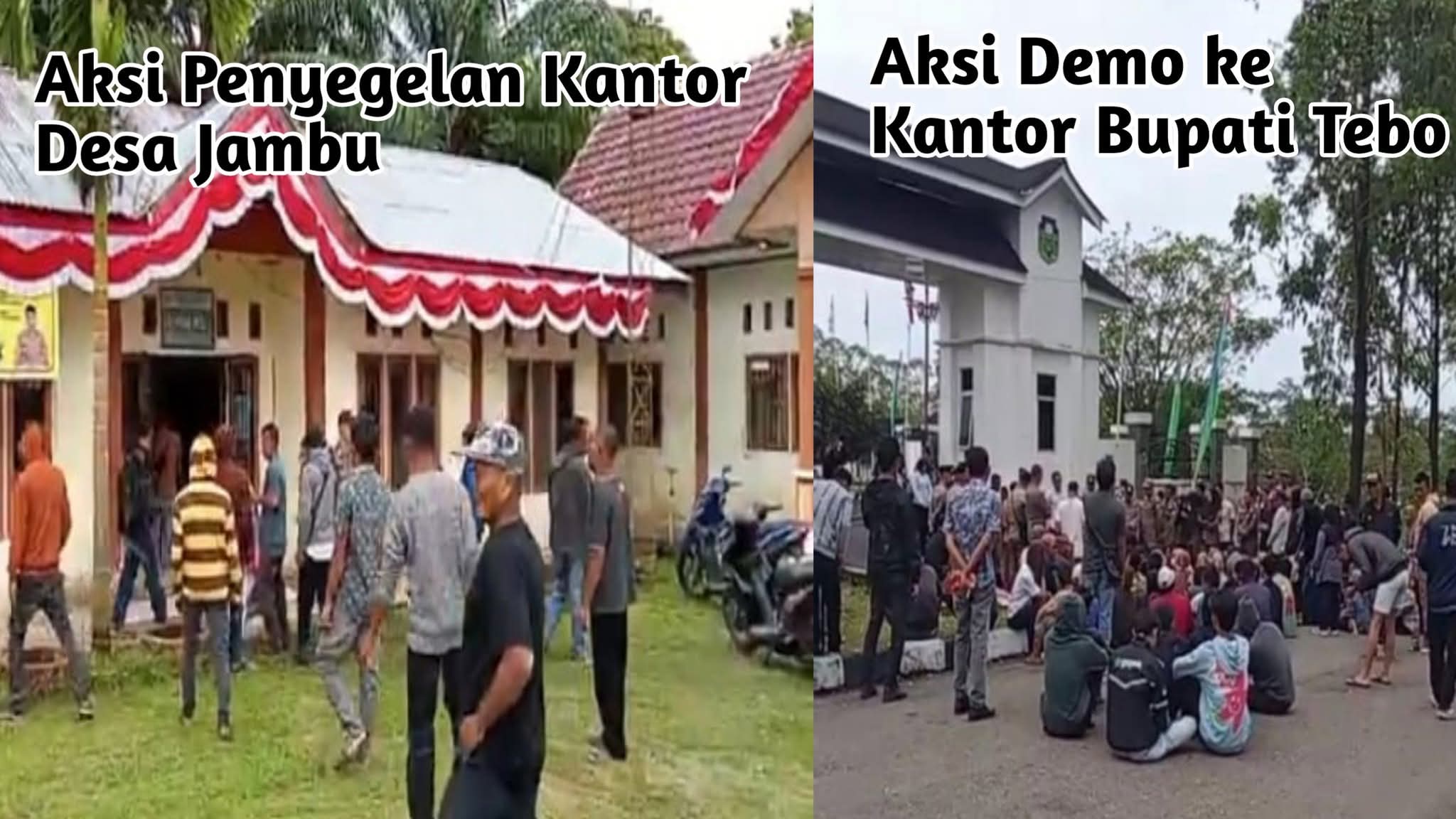Diketahui sebelum menggelar aksi demo didepan kantor bupati Tebo, Massa melakukan penyegelan ponton milik pemdes dan kantor desa Jambu